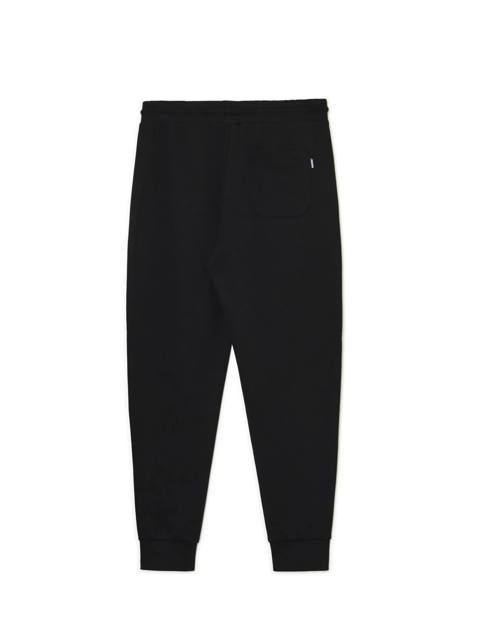 Czarne męskie spodnie dresowe, uszyte z podwójnej dżersejowej dzianiny zawierającej bawełnę. Niezawodny i trwały item do każdego rodzaju aktywności! dresowe spodnie typu jogger długie nogawki zwężane ku dołowi, wykończone ściągaczem gumka w pasie ze sznurkiem do regulacji otwarte kieszenie po bokach naszywana kieszeń z tyłu nadruk na nogawce z wykorzystaniem techniki emboss