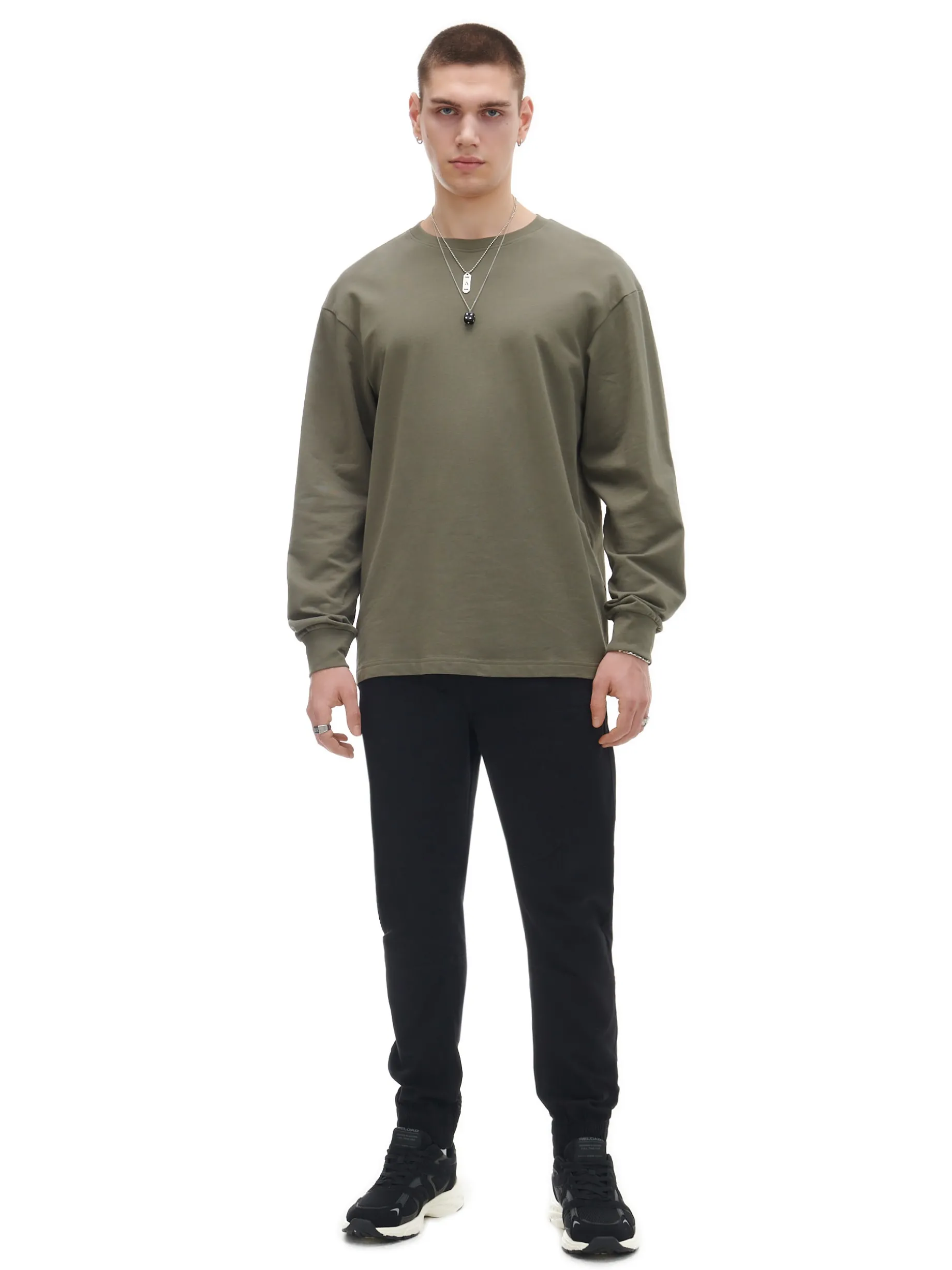 Męskie czarne spodnie jeansowe typu jogger chino, uszyte z dzianiny zawierającej bawełnę. regularny stan, w pasie elastyczna gumka i sznurek do regulacji nogawka zakończona ściągaczem z wszytą elastyczną gumką cztery kieszenie