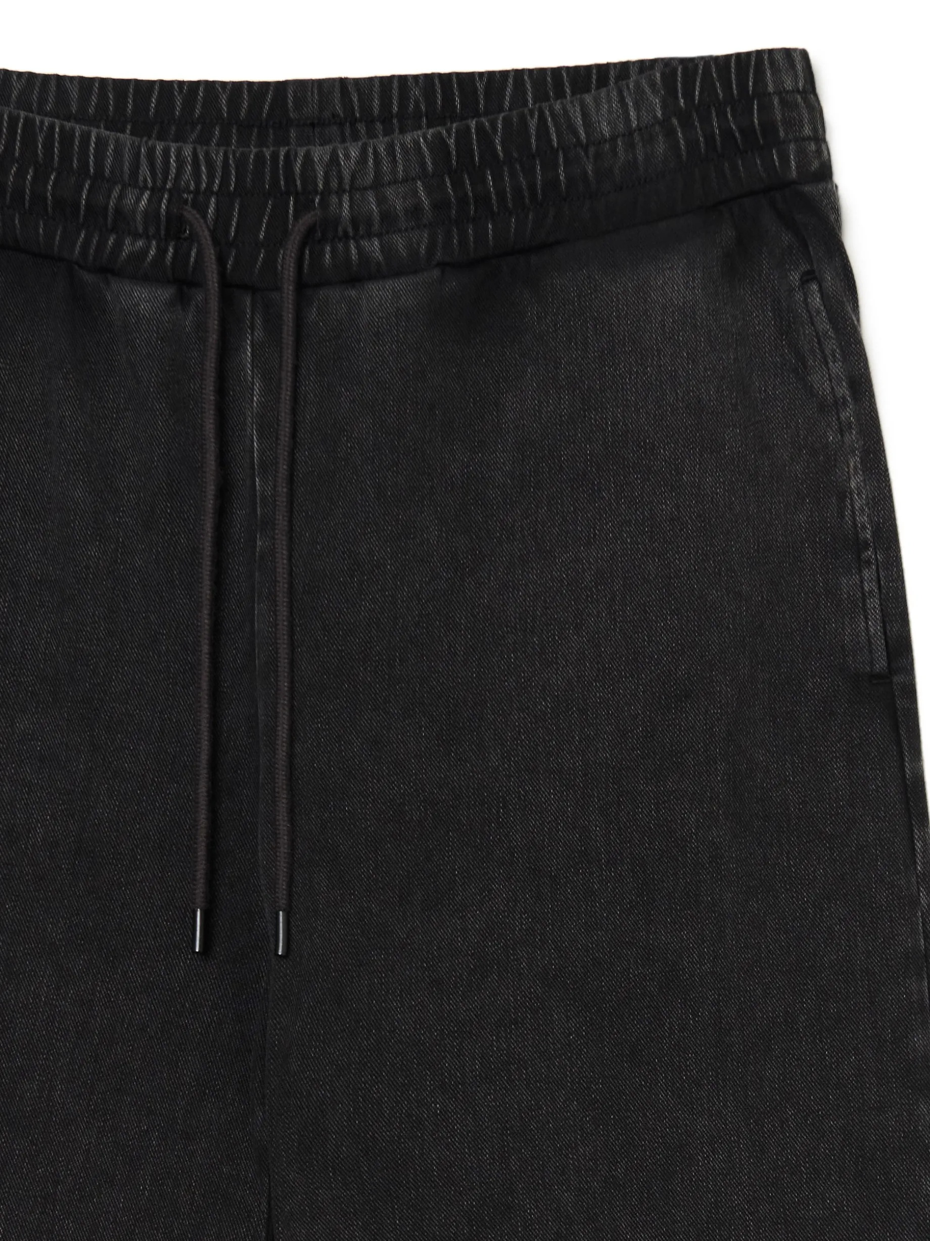 Męskie spodnie typu joggery, uszyte z denimu z lekkim efektem sprania. Świetnie fitują zarówno z dresową bluzą, jak i jeansową kurtką. Sprawdź! 100% bawełny regularny stan guma w pasie ze sznurkiem do regulacji długie nogawki wykończone ściągaczem otwarte kieszenie po bokach naszywana kieszeń z tyłu delikatny efekt sprania