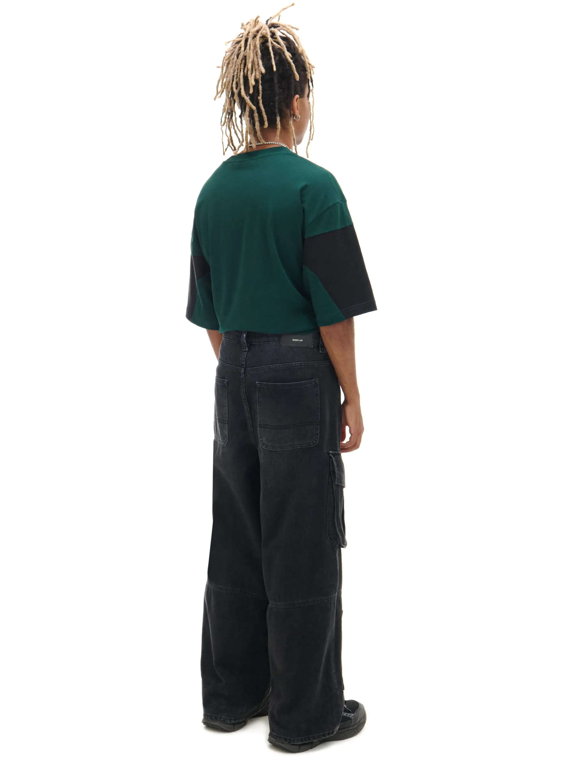 Jeansowe męskie spodnie typu skater uszyte z bawełnianej tkaniny. Mocno obniżony krok, bardzo szeroka nogawka i dopasowana talia to must have tego fasonu. Wyposażone w wiele praktycznych kieszeni – w nich schowasz wszystko! 100% bawełny denimowe spodnie o kroju skater zapięcie na zamek i guzik długie, szerokie nogawki liczne kieszenie zewnętrzne szlufki na pasek ozdobne przeszycia efekt sprania na całości miejscowy efekt przebarwienia