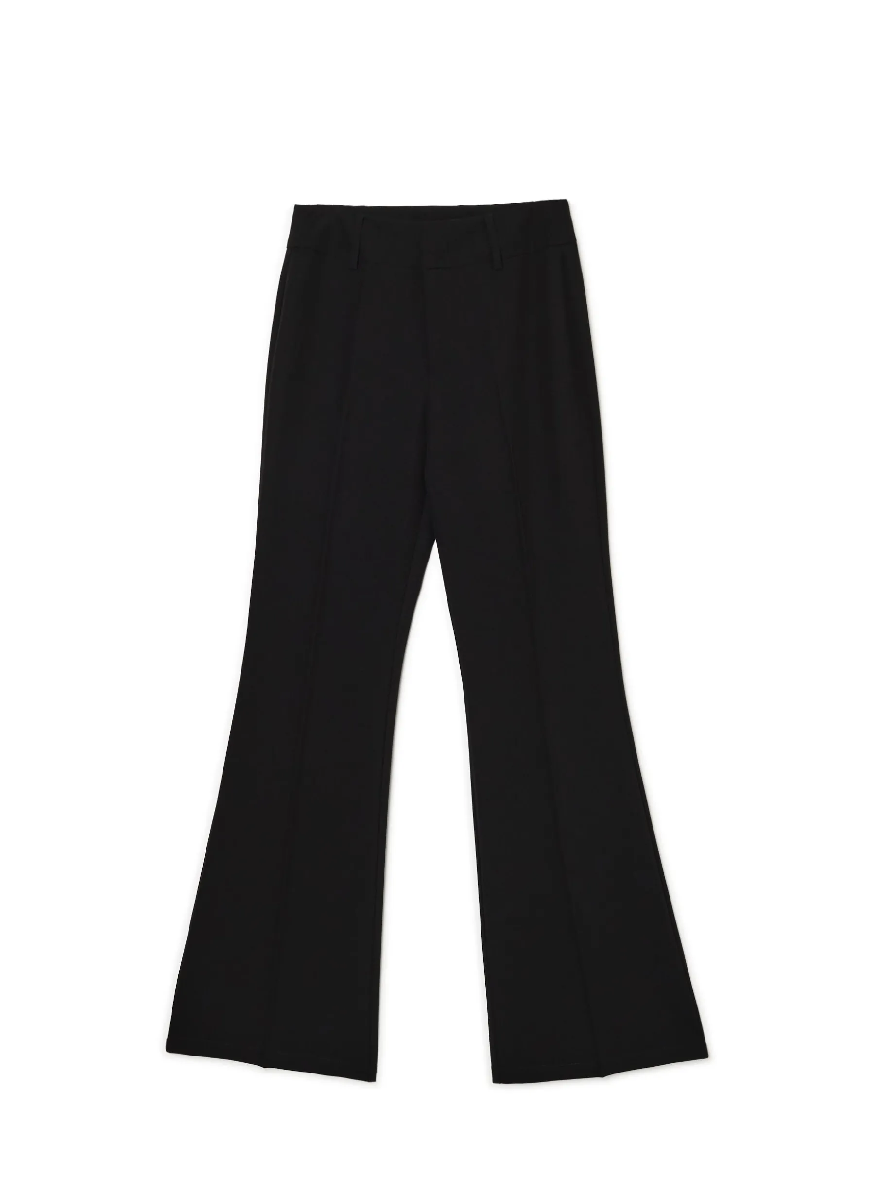 Damskie spodnie w kant z rozszerzanymi ku dołowi nogawkami. Dopasowana góra pięknie podkreśla linię bioder. Dostępne w kilku stonowanych kolorach. Zmatchujesz ten item zarówno z oficjalnymi stylizacjami, jak i casualowymi. spodnie o kroju flare uszyte z grubego i solidnego twillowego materiału zapięcie na haftkę, guzik i zamek rozszerzane ku dołowi nogawki z zaznaczonym kantem szerokie szlufki na pasek