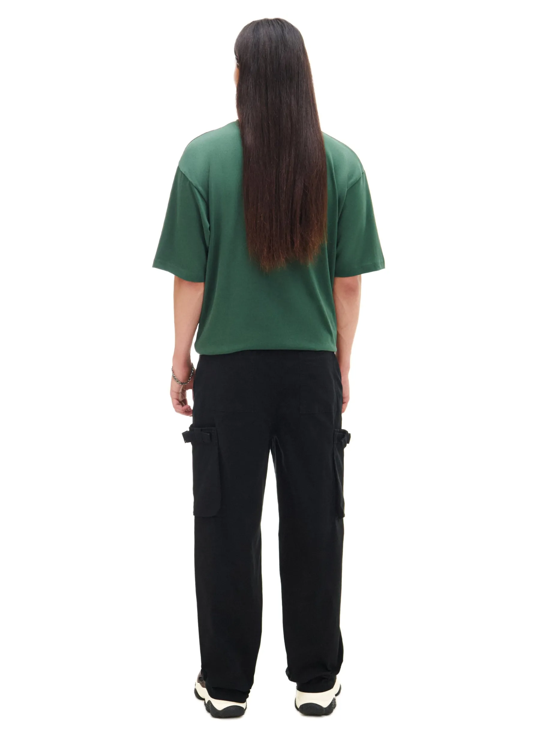 Spodnie męskie o luźnym kroju, uszyte z mieszanki tkaniny. Dodatkowe regulacje w pasie i przy kieszeniach zapewnią komfort i dopasują item do każdej sylwetki. bawełna z dodatkiem elastycznych włókien swobodny, luźny krój zapięcie na zamek i guzik w talii paski z mini klamrami wąskie szlufki na pasek skośne kieszenie po bokach naszywane kieszenie z tyłu dodatkowe kieszenie cargo na nogawkach dwa wąskie, regulowane paski dodatkowa pętelka do zawieszania np. otwieracza do piwa