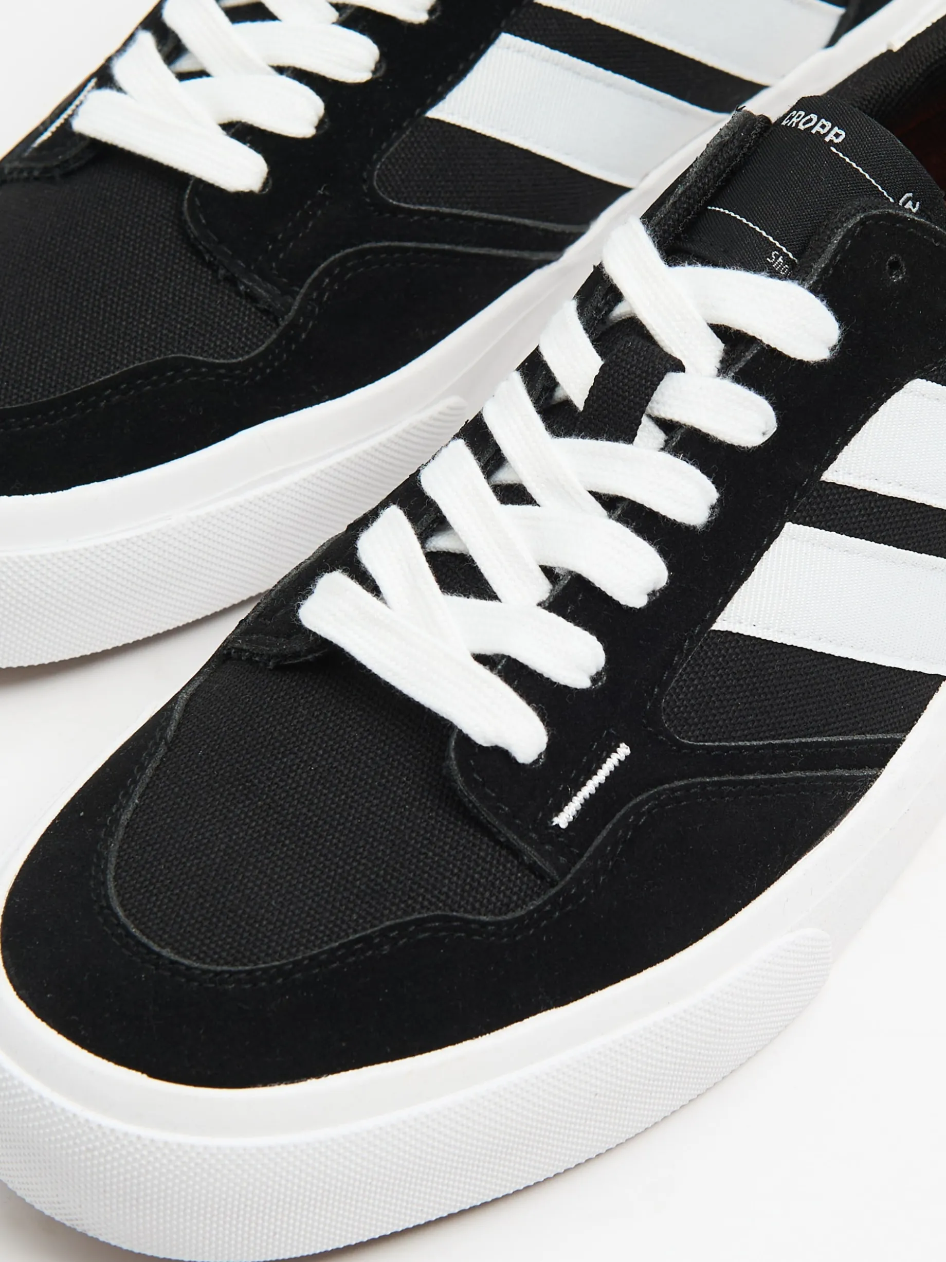 Czarne męskie buty sportowe uszyte z mieszanki dzianin z dodatkiem bawełny. Dwukolorowa cholewka z tkaninowymi paskami. Sprawdzają się idealnie podczas codziennych aktywności. sznurowane trampki w sportowym stylu cholewka wykonana z dzianinowej mieszanki z bawełną solidna podeszwa z dodatkiem gumy naturalnej wiązane na płaskie, białe sznurówki ozdobne przeszycia