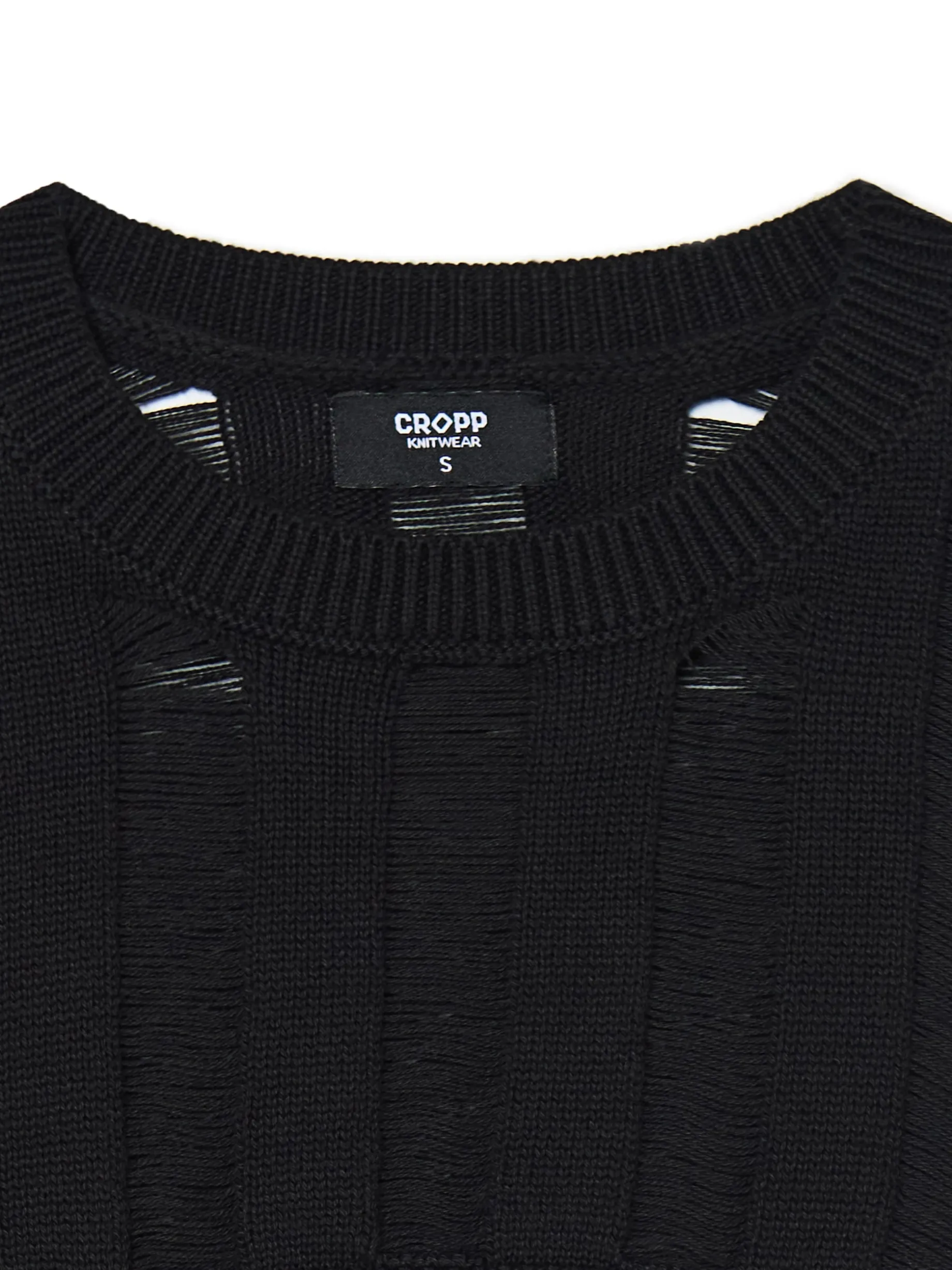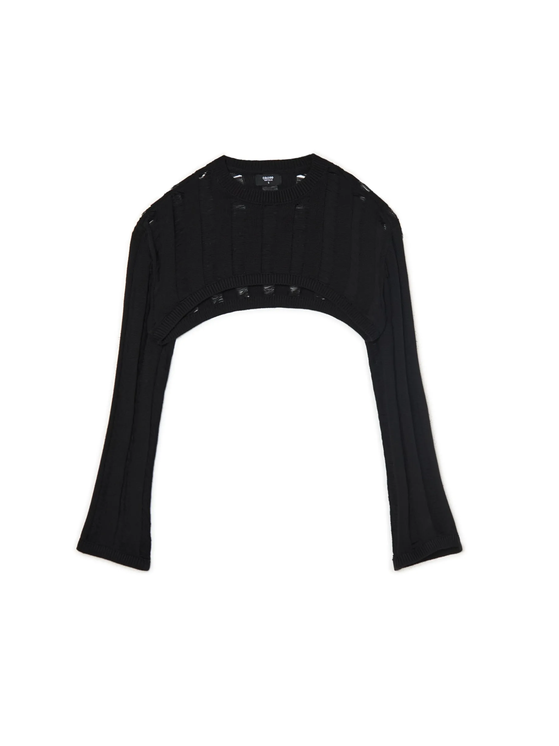 Damski czarny sweter o krótszym kroju uszyty z bawełny. Delikatne prześwity stanowią ozdobę tego modelu i idealnie fitują zarówno z topami, jak i sukienkami. 100% bawełny krótki krój długie, swobodne rękawy półokrągły dekolt wykończony ściągaczem Wzrost modelki: 177 cm