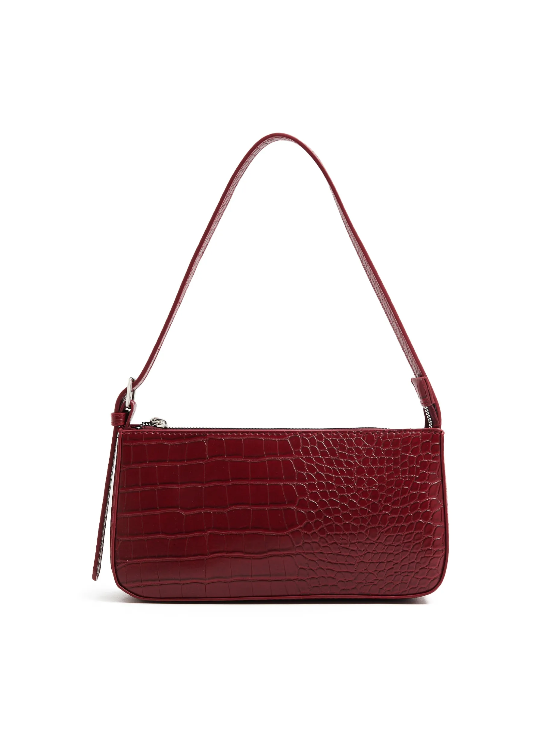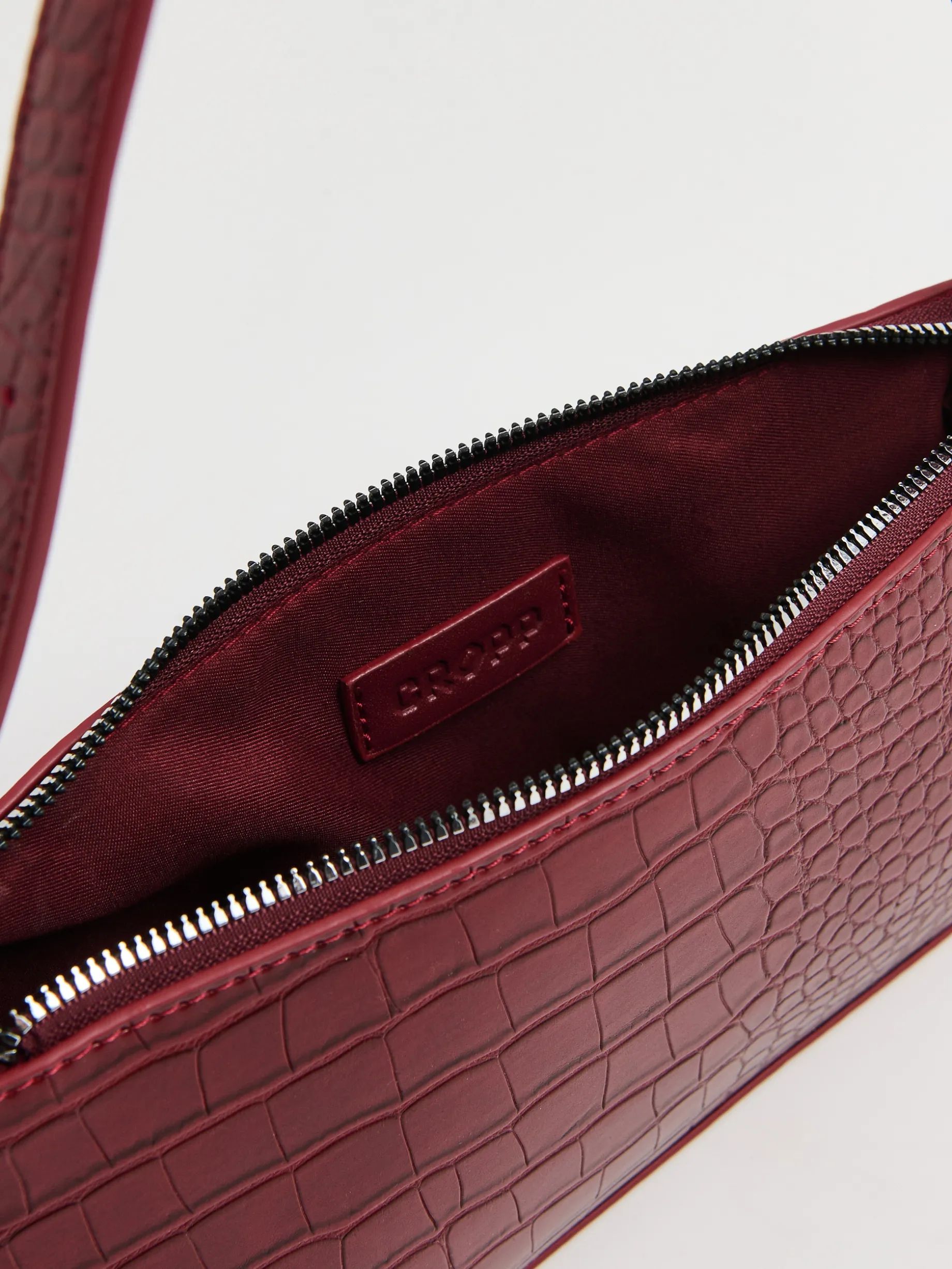 Mała damska torebka z imitacji krokodylej skóry. Idealny dodatek do eleganckich sukienek, jak i casualowych stylizacji. mała torebka z imitacji skóry główna komora z zapięciem na zamek pasek z regulacją długości Wymiary torebki: 13cm x 25cm x 5,5cm