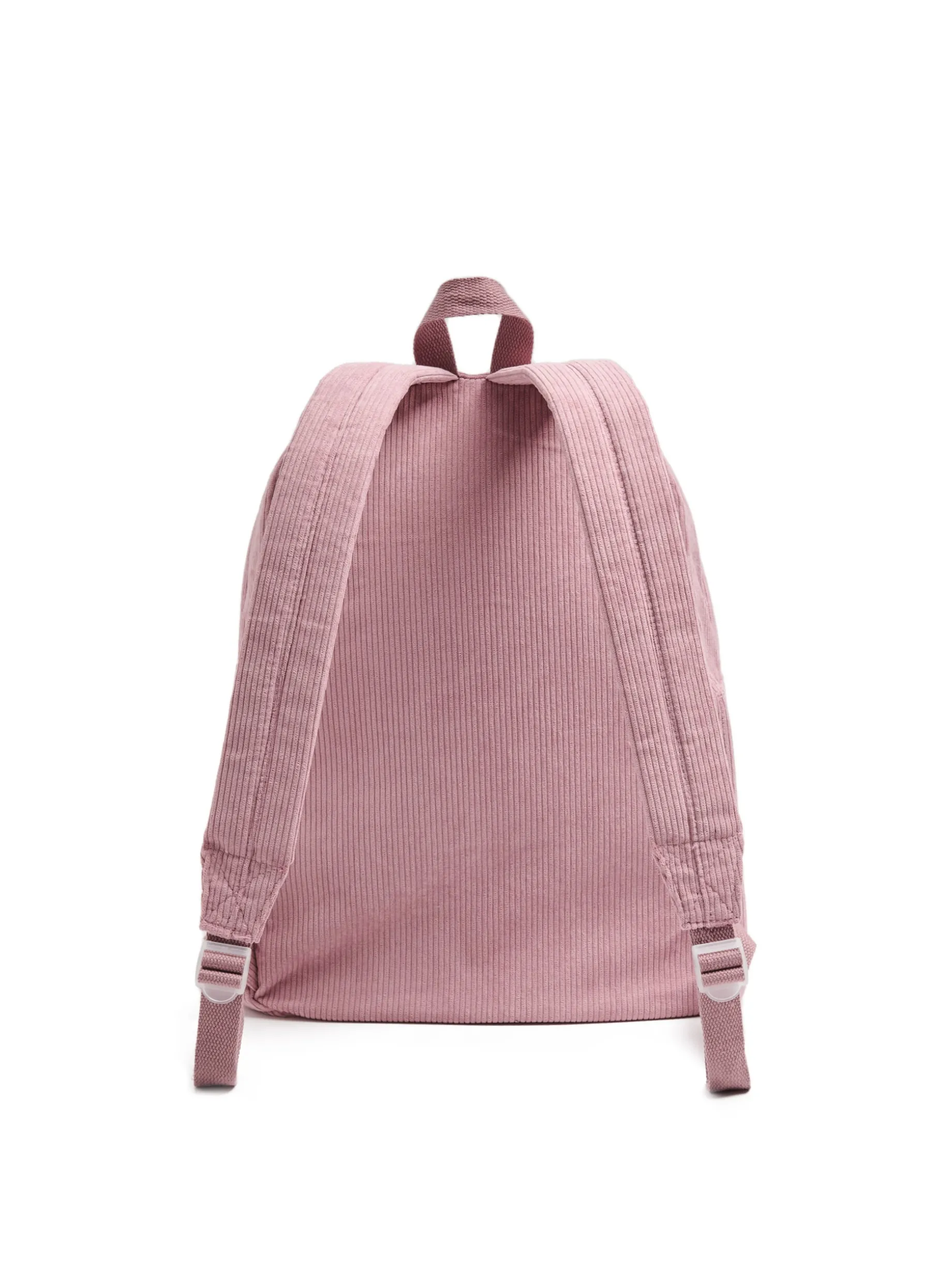 Pojemny damski plecak, uszyty z wytrzymałej, różowej tkaniny sztruksowej. Idealny do pracy lub szkoły! główna komora zapinana na suwak dodatkowa zewnętrzna kieszeń zapinana na suwak wewnątrz duża kieszeń na laptopa i dodatkowe kieszonki na klucze, telefon czy portfel regulowane szelki mały haft z przodu Wymiary produktu: 43 x 31 x 12 cm
