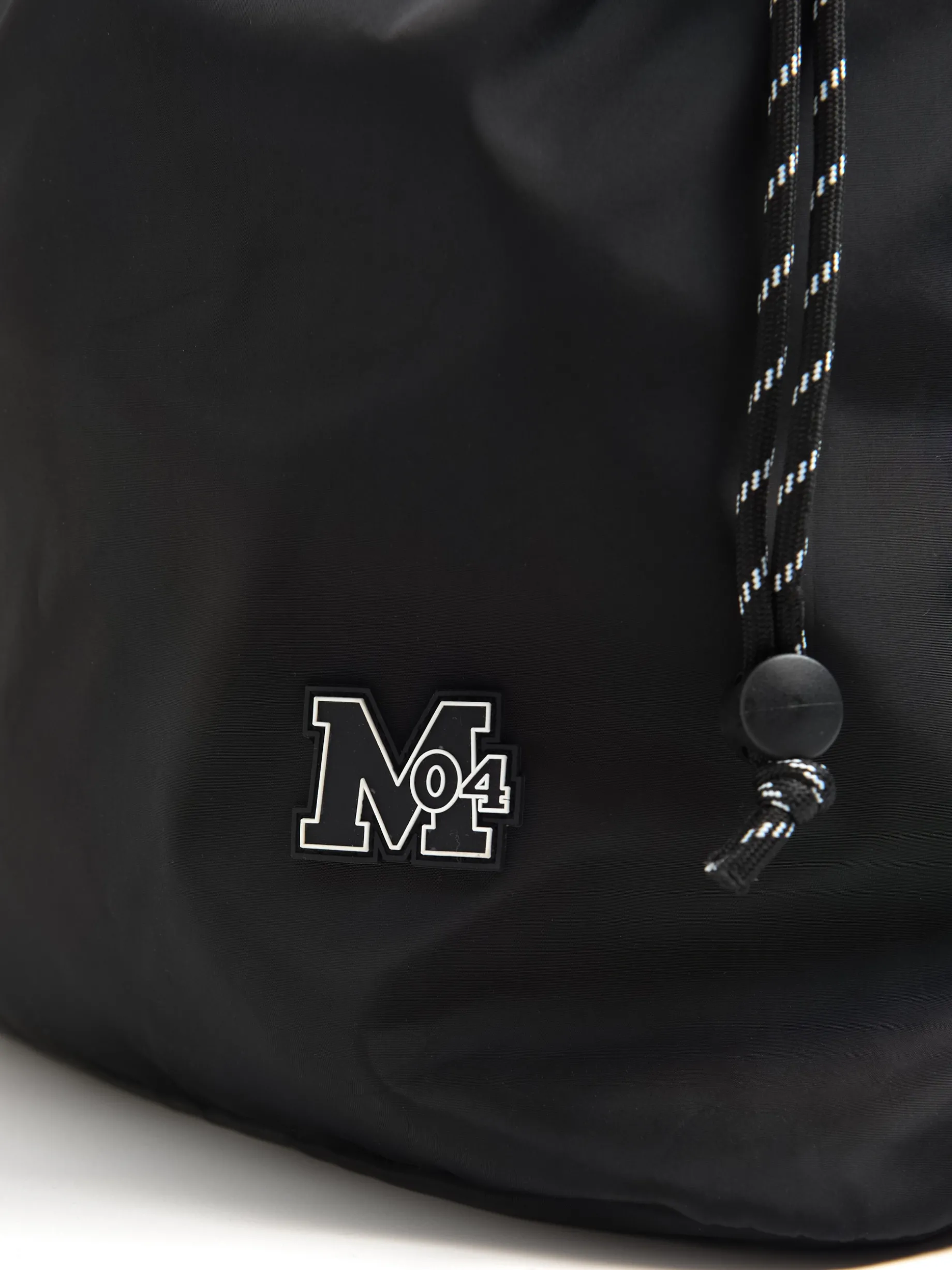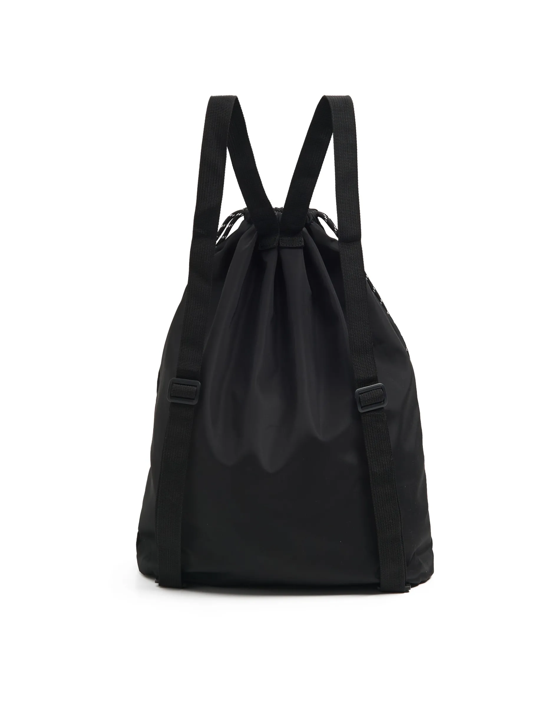 Damski pojemny plecak typu worek uszyty z gładkiej dzianiny w kolorze czarnym. Idealny, jeśli potrzebujesz mnóstwa miejsca na swoje rzeczy! dwa wąskie, regulowane paski ściągacz tunelowy u góry, dwukolorowy sznurek wewnątrz otwarta kieszeń ozdobna naszywka w kształcie litery z przodu Wymiary plecaka: 44cm x 32cm x 14cm