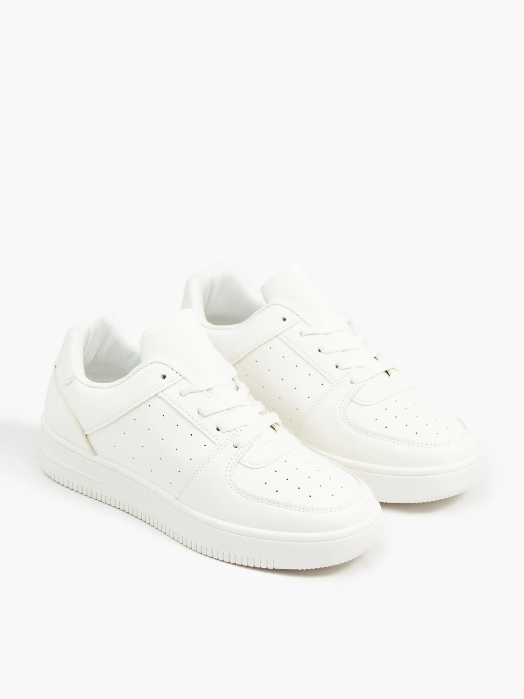 Sportowe damskie buty na grubiej podeszwie, wykonane z tworzyw syntetycznch. płaska, solidna podeszwa niski, wygodny fason wiązanie na płaskie białe sznurowadła