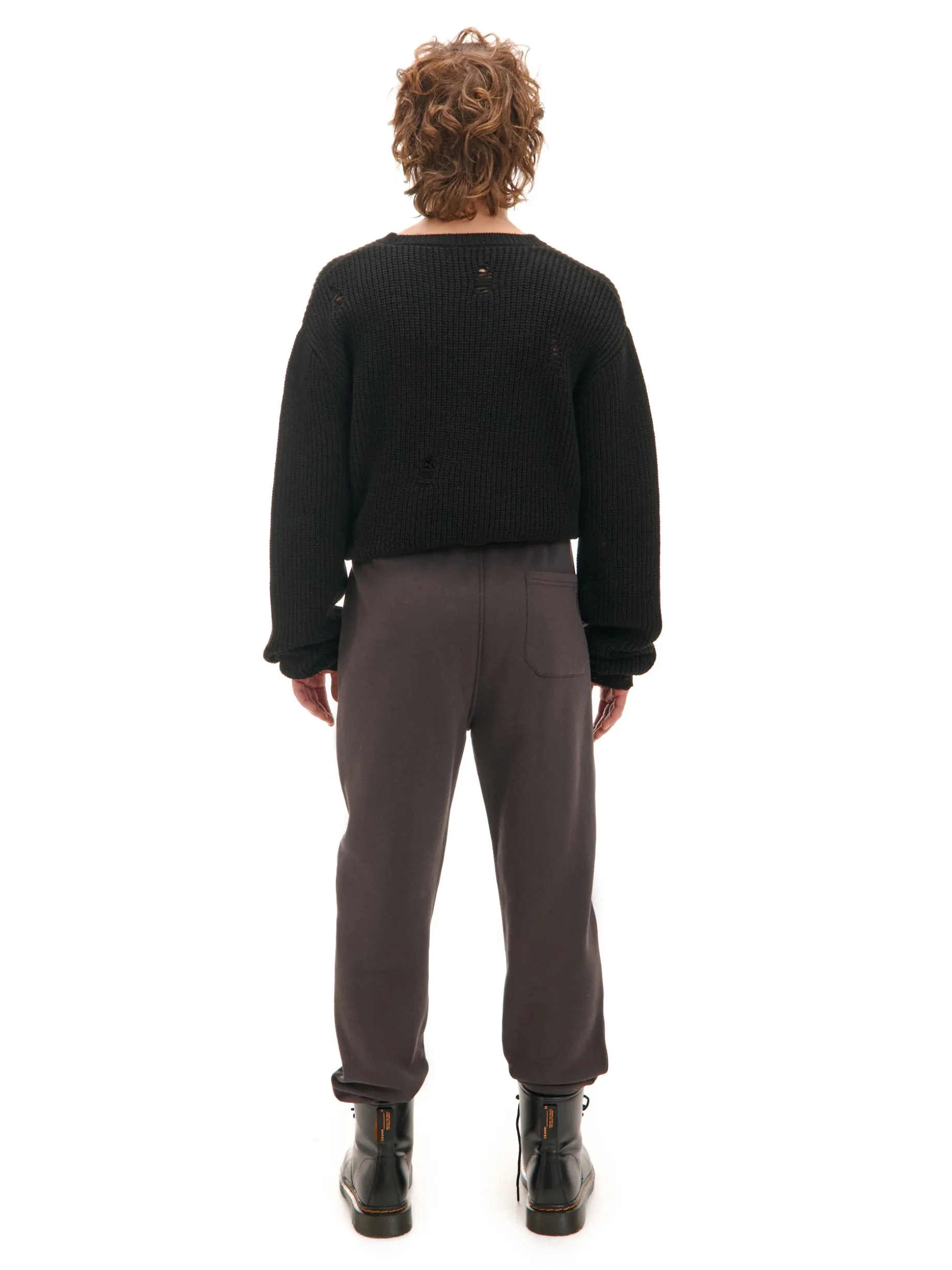 Spodnie męskie typu jogger uszyte z trwałej dzianiny o wysokiej zawartości bawełny fleecy. Ściągacze przy nogawkach zapobiegają unoszeniu się spodni. Idealne na rower, spacer z psem, czy chillowanie na kanapie. spodnie typu jogger uszyte z miękkiej dzianiny z bawełną długie. swobodne nogawki zakończone ściągaczem gumka w pasie ze sznurkiem do regulacji otwarte kieszenie po bokach naszywana kieszeń z tyłu naszywka z napisem Cropp