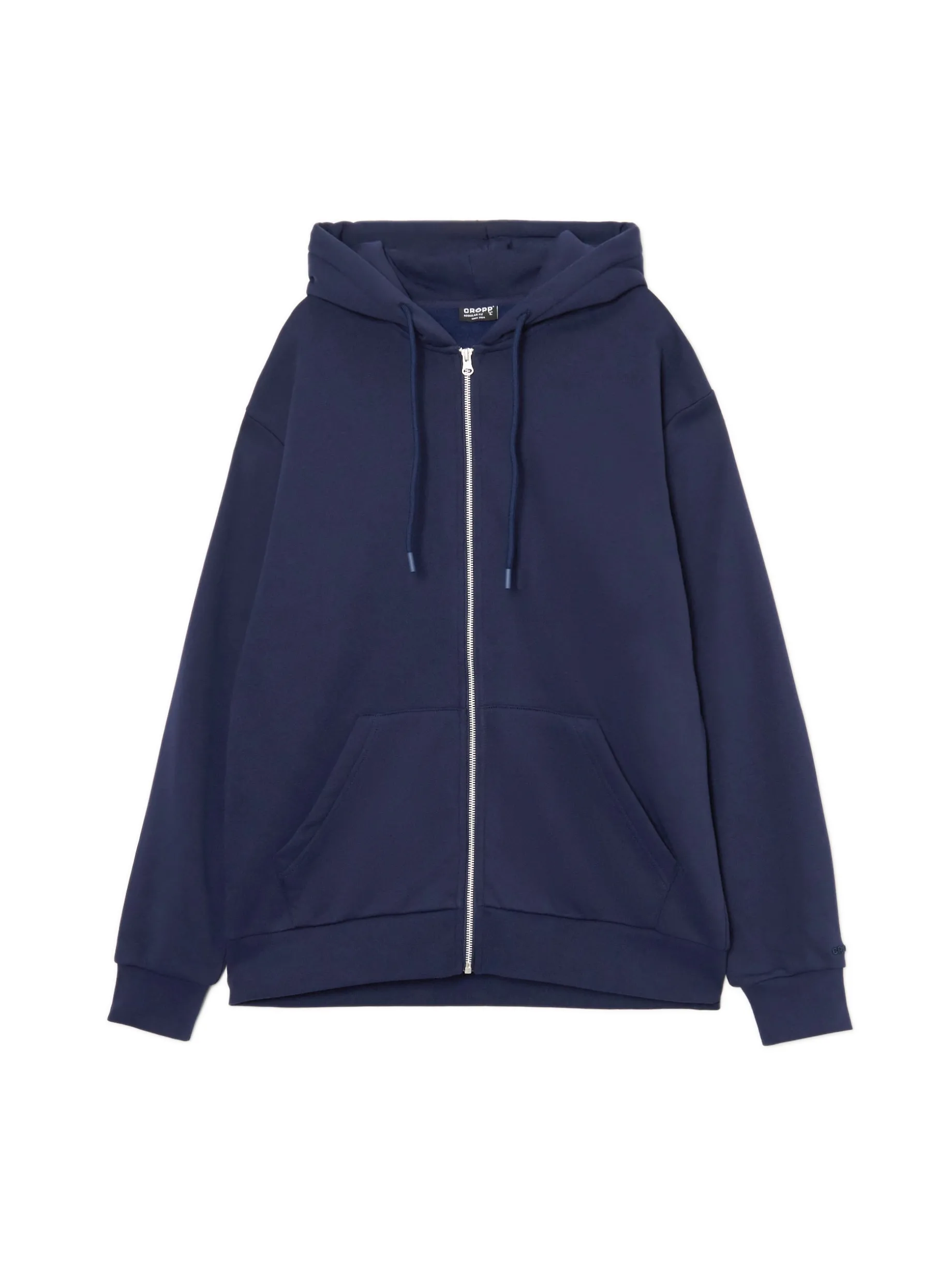 Prosta męska bluza dresowa, zapinana na suwak. Uszyta z ciemnej mieszanki dzianin o wysokiej zawartości bawełny. Idealny basic na jesień! wygodny, regularny krój z przodu zapięcie na suwak kaptur regulowany troczkami rękawy i dół zakończone ściągczem dwie kieszenie z przodu mały haft na rękawie z napisem CROPP