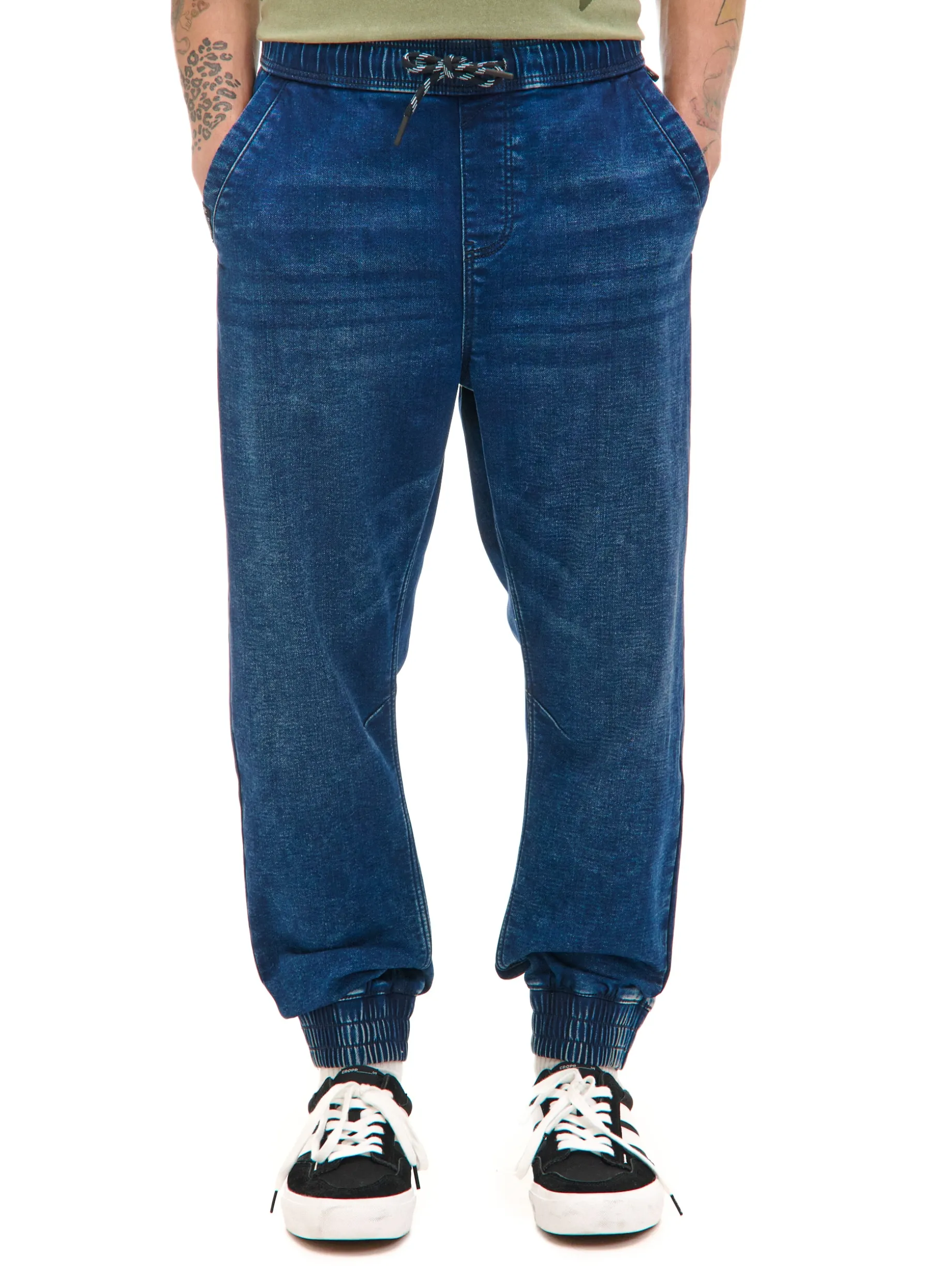 Jeansy i dresy w jednym modelu? Czemu nie! Te męskie denimowe joggery zostały uszyte z mieszanki tkanin z elastycznym wykończeniem. Ściągacze przy nogawkach, guma z regulacją w pasie i praktyczne kieszenie przypominają wyglądem dresy. dresowe joggery o kroju regular tkanina z dodatkiem elastycznych włókien, dzięki czemu model dopasowuje się do zmieniającej się sylwetki guma w pasie ze sznurkiem do regulacji nogawki zakończone ściągaczem skośne kieszenie po bokach dwie naszyte kieszenie tylnie efekt sprania na całości dodatkowa szlufka, np. na klucze lub otwieracz do piwa naszywka Cropp