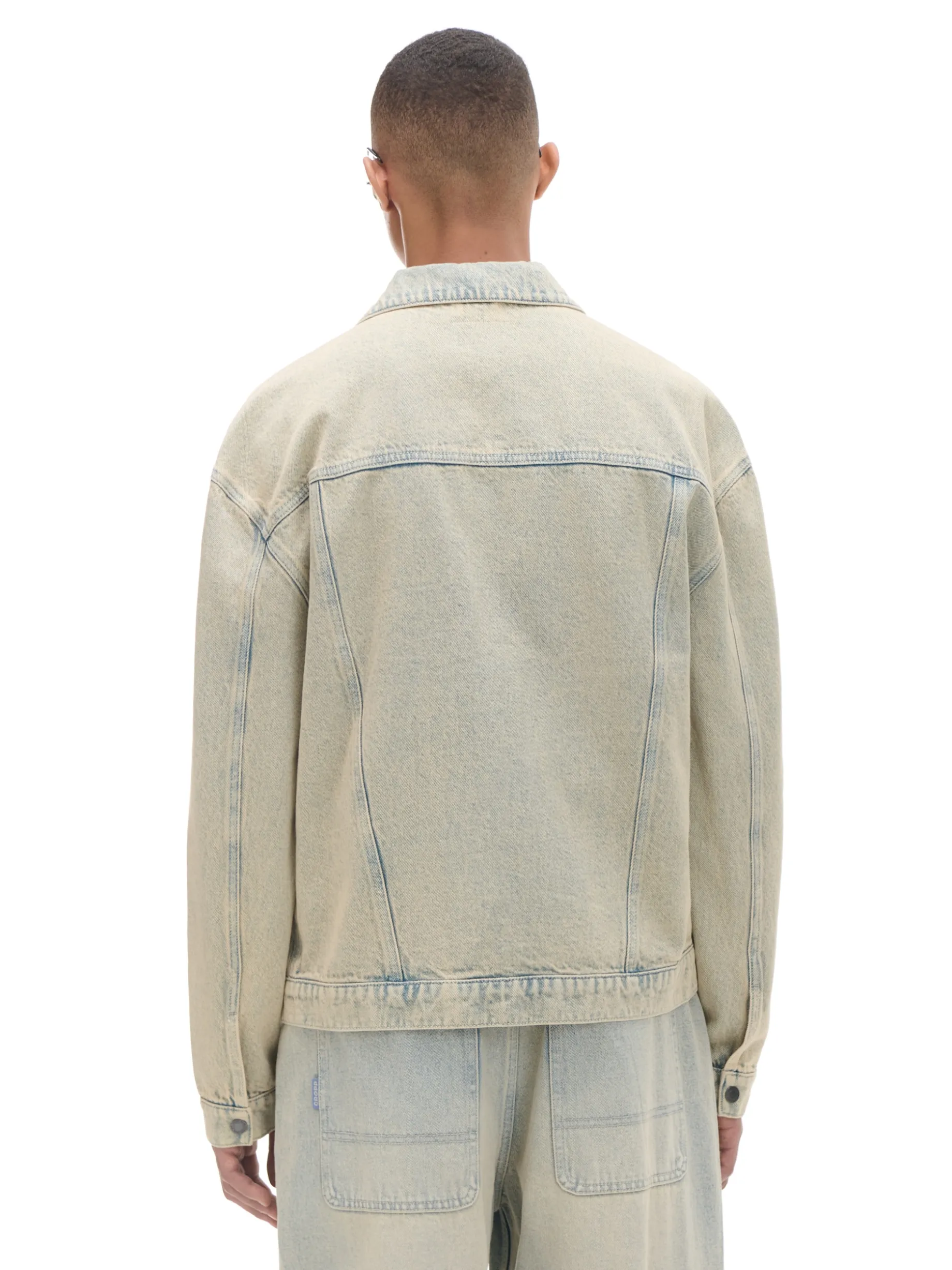 Męska kurtka typu katanka o kroju oversize, uszyta z bawełnianej tkaniny. Ten kolorystyczny odcień w stylu retro, wyróżni Cię w tłumie! denimowa katanka z kieszeniami 100% bawełny krój oversize zapięcie na zatrzaski na całej długości kołnierz z otwartymi klapami długie rękawy z zatrzaskami dwie kieszenie po bokach dwie zapinane kieszenie piersiowe okryte patkami Wzrost modela: 185 cm