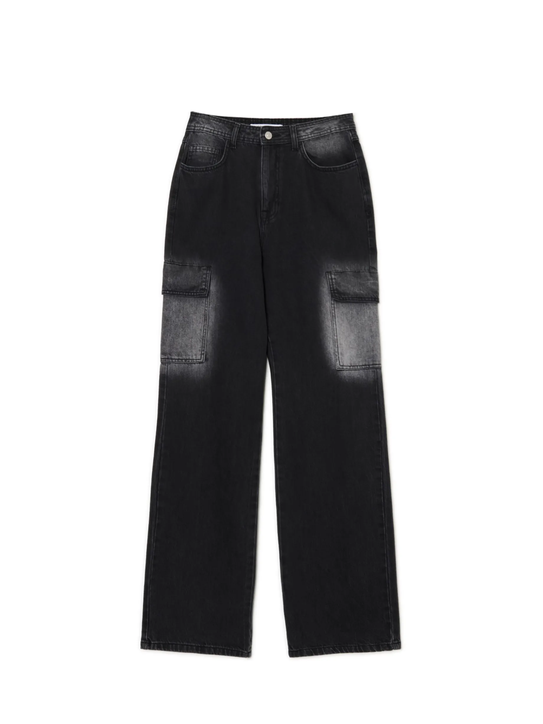 Ciemne damskie spodnie jeansowe uszyte z bawełnianej tkaniny. Praktyczne kieszenie, wygodne zapięcie i efekt sprania w różnych miejscach. Casual, który warto mieć awaryjnie w szafie! 100% bawełny obszerny krój baggy model tall – nogawka dłuższa niż standardowa zapięcie na zamek i guzik pięć kieszeni dodatkowe kieszenie cargo na nogawkach efekt sprania w kilku miejscach Potrzebna Ci wersja petite? Jest tu: 745AQ-99M . Czekasz na wersję regular? Już jest: 733AQ-99M .