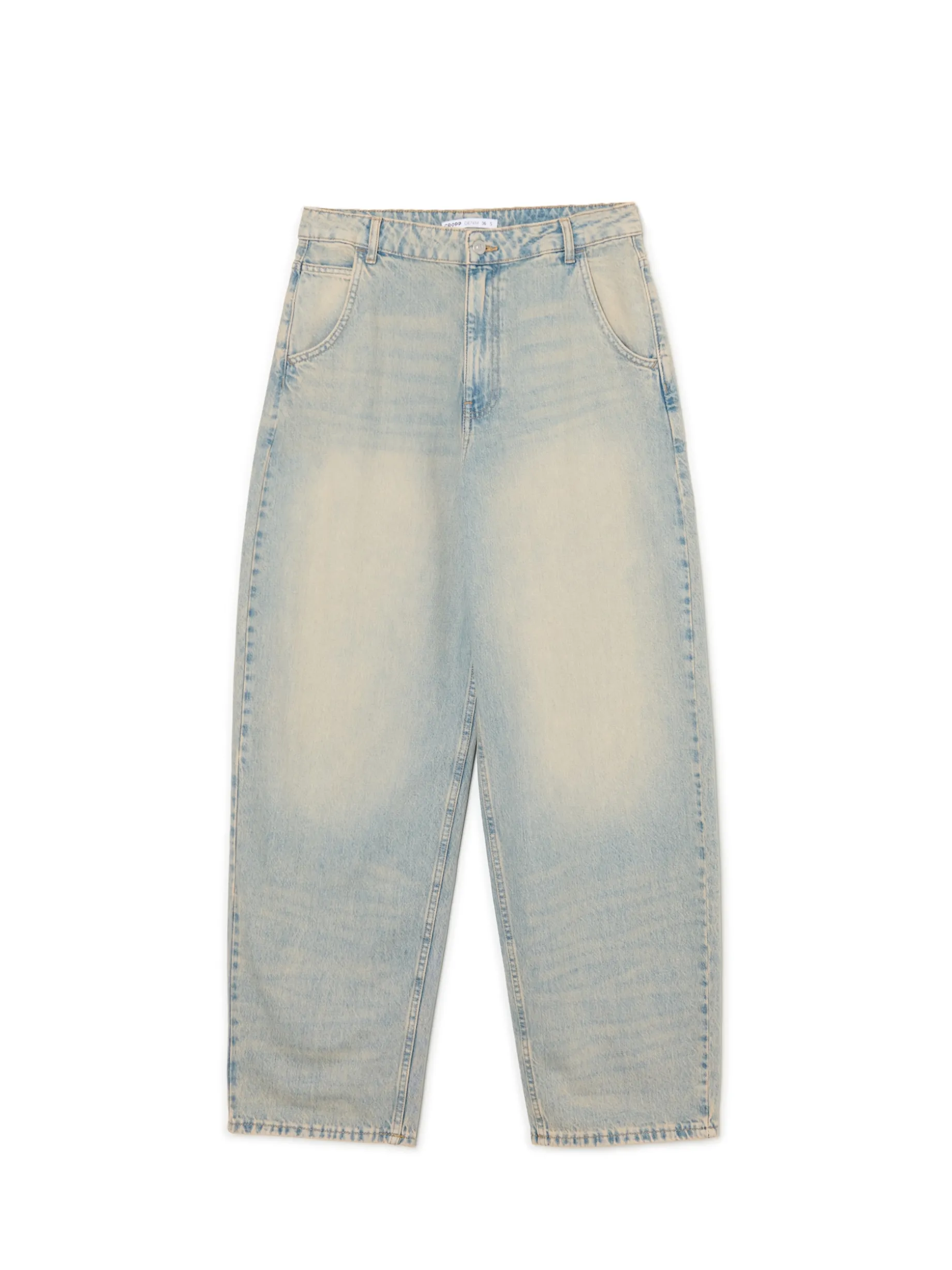 Damskie spodnie jeansowe typu skater, uszyte z bawełny. Luźne nogawki i dopasowana talia zapewnią komfort podczas aktywnego spędzania czasu. Dostępne inne wersje kolorystyczne. 100% bawełny krój skater zapięcie na suwak i guzik szlufki na pasek długie, szerokie nogawki dwie kieszenie z przodu, dwie z tyłu mała kieszeń na monety delikatny efekt sprania Wzrost modelki: 172 cm