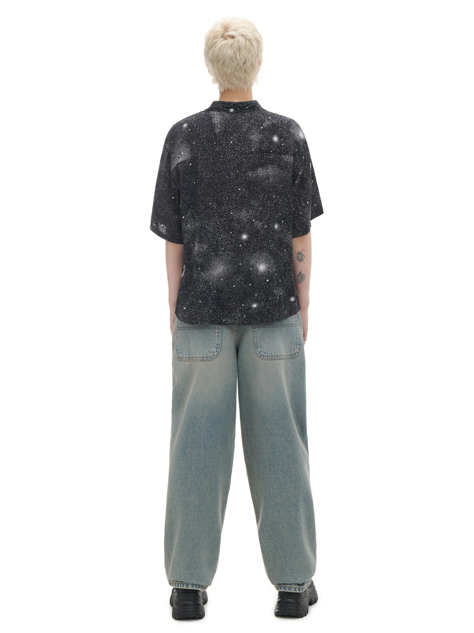 Damska koszula uszyta w 100% z wiskozy w kroju oversize. Nadruk na przodzie inspirowany pracami Dimy Kashtalyana. lekki materiał z wiskozą luźny krój oversize jednorzędowe zapięcie na guziki klasyczny kołnierzyk krótkie, swobodne rękawy nadruk w formie artystycznej grafiki Ten produkt powstał w ramach kolaboracji Cropp x DIMA. Sprawdź jego inne prace: @dkashtalyan i zainspiruj się twórczą energią!
