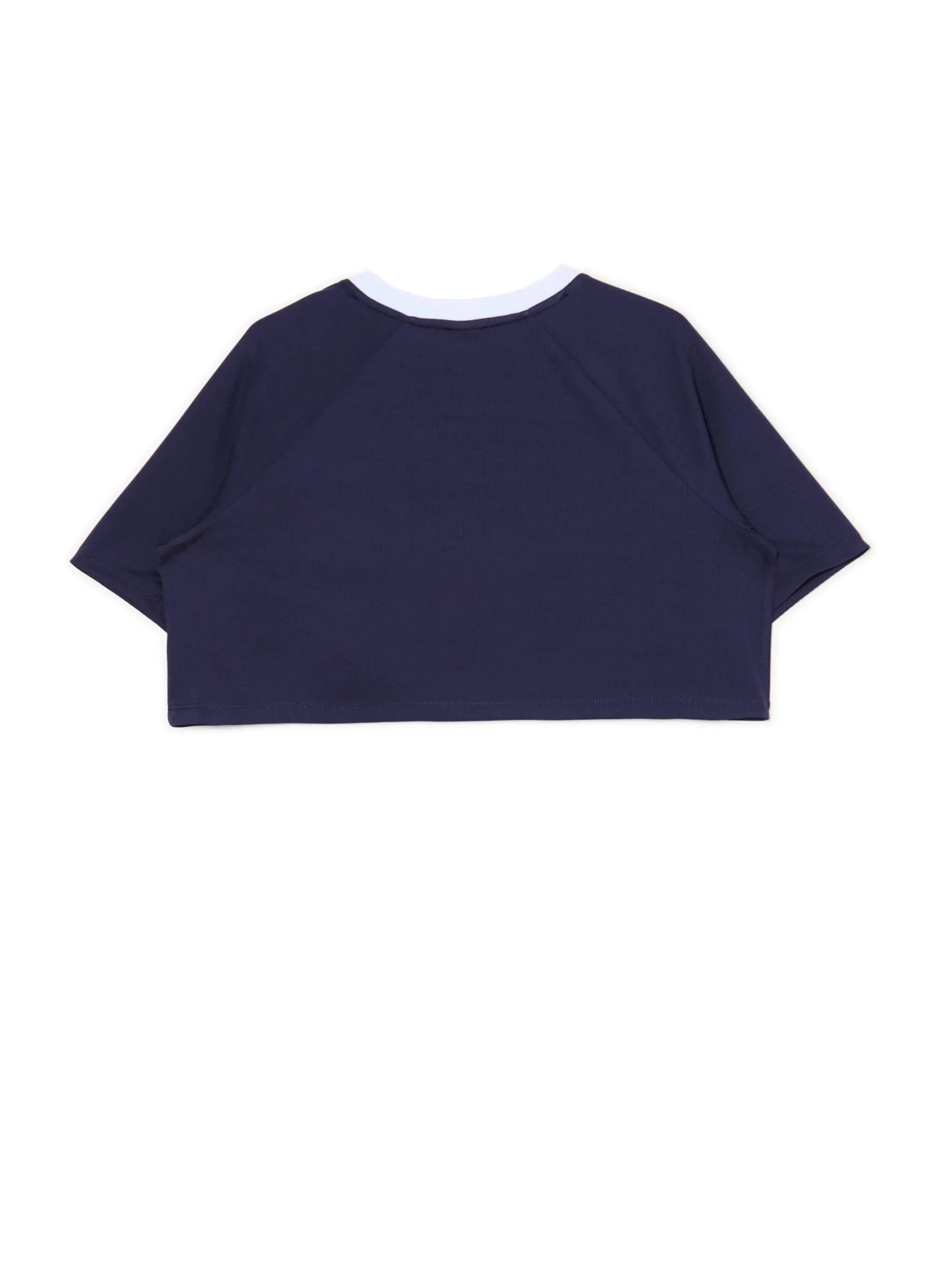 Sportowa damska koszulka uszyta z przewiewnego materiału w kroju basic. Tego itemu nie masz jeszcze w koszyku? Nic się nie stało! Nie żałuj i wrzucaj! lekki materiał krótkie, raglanowe rękawy dekolt w szpic wykończenie ozdobną lamówką nadruk w piłkarskiej stylówce
