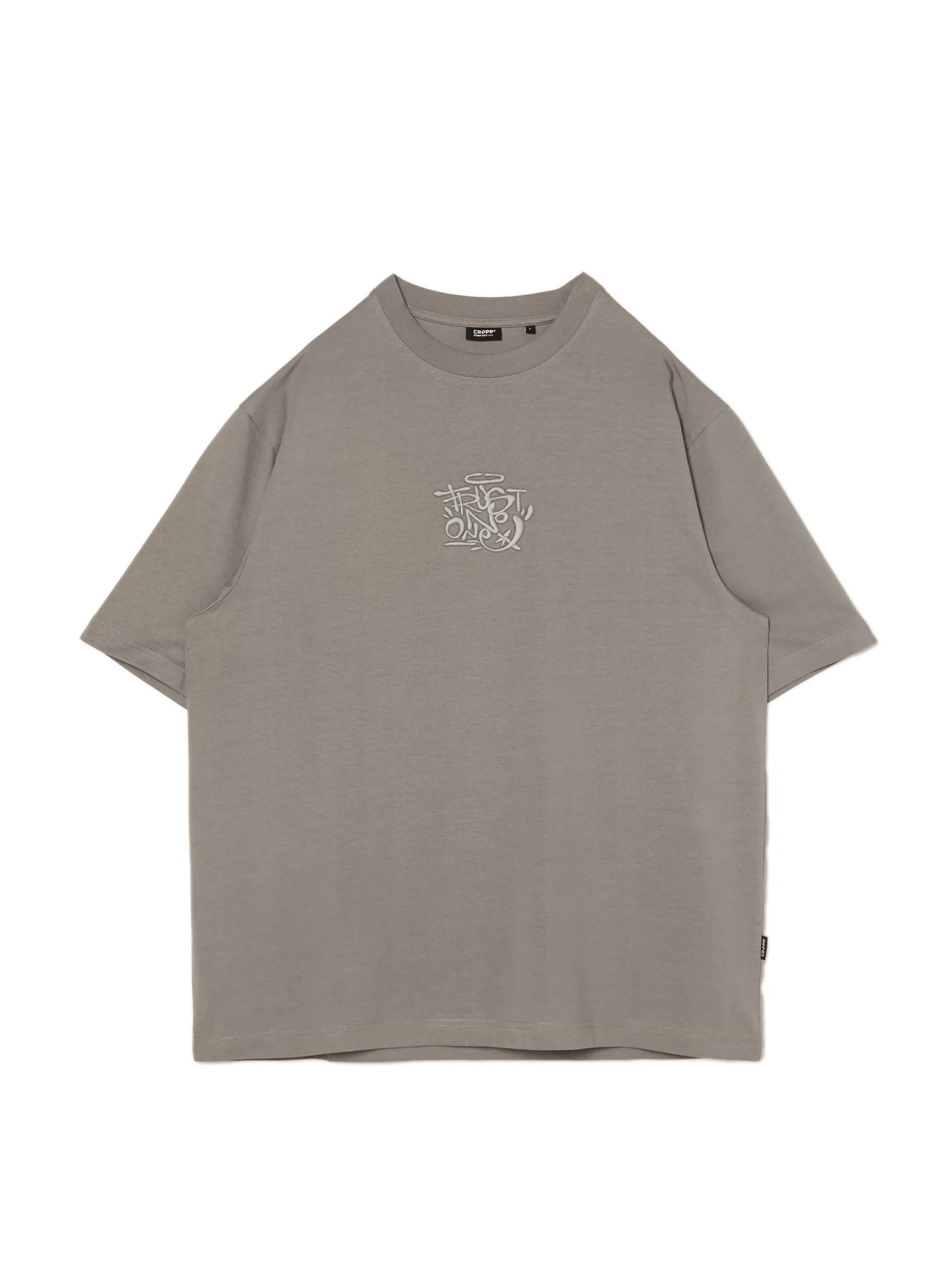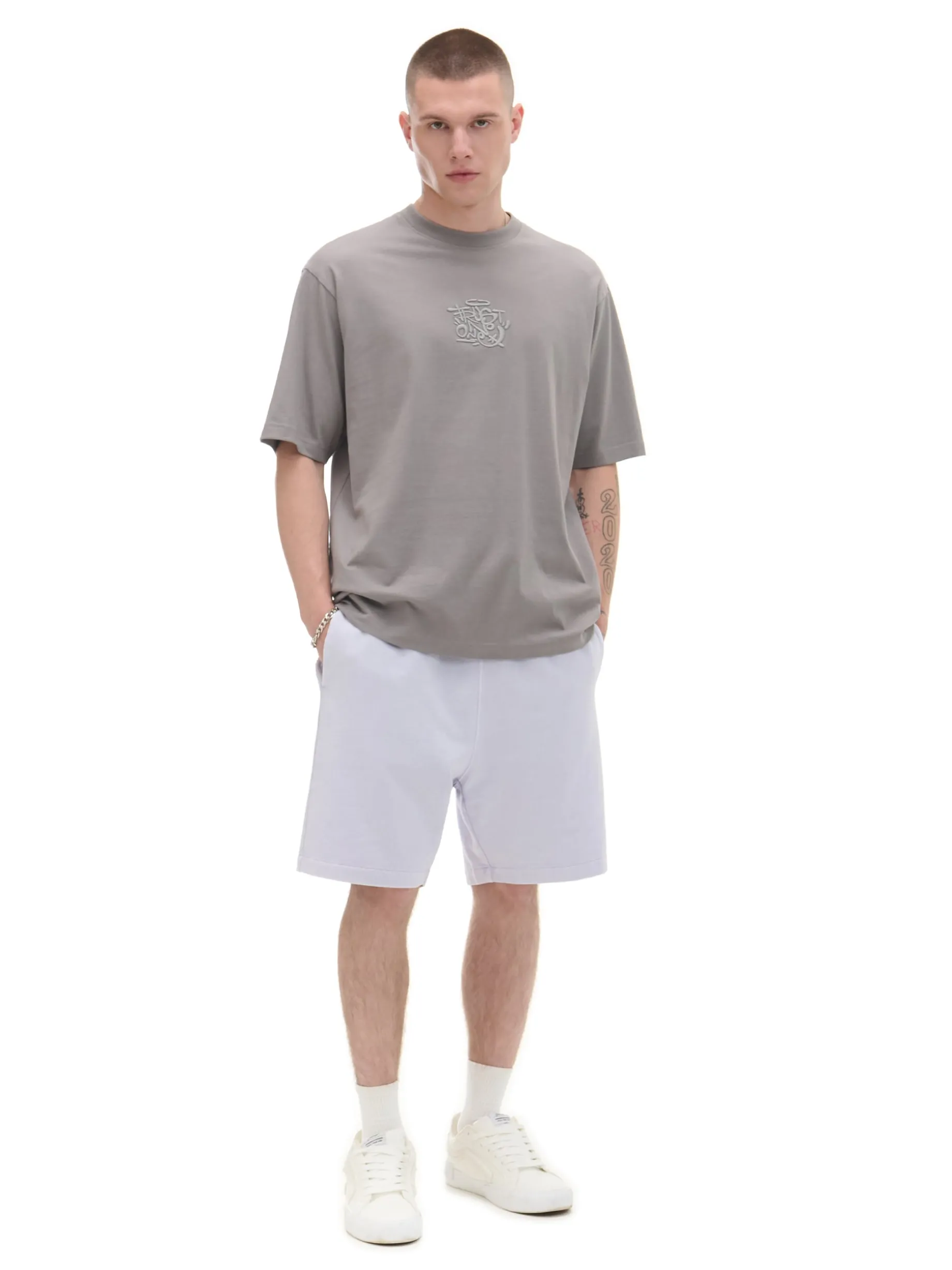 Męska koszulka w kroju comfort z krótkim rękawem, uszyta z bawełny z delikatnym haftem na przodzie. 100% bawełny wygodny krój comfort krótkie, swobodne rękawy półokrągły dekolt z lamówką na środku dekoracyjny haft Model prezentuje produkt w rozmiarze M/L. Wzrost modela: 185 cm