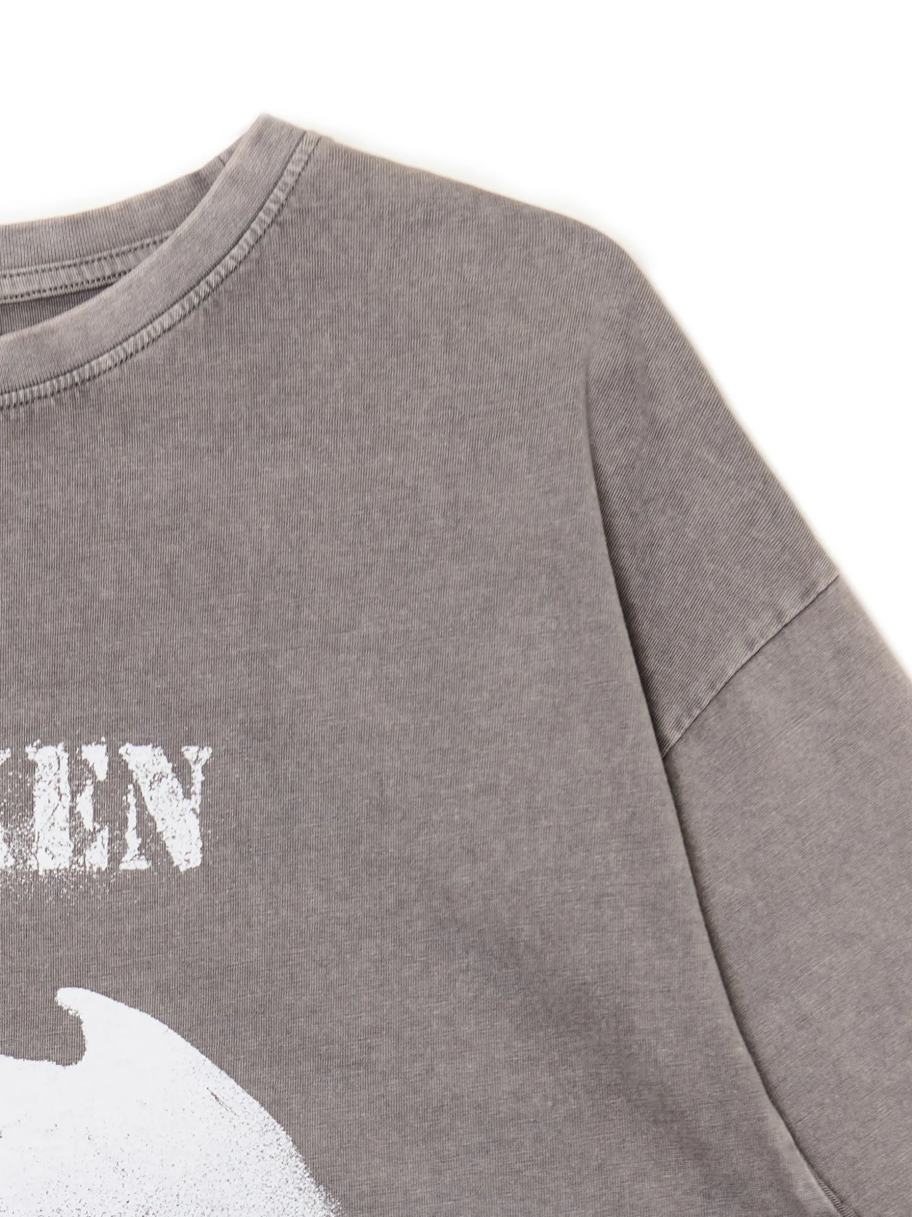 Bawełniana damska koszulka w kroju oversize z efektem ombre w odcieniach szarości i dużym nadrukiem z przodu. Sztosowy model na wieczorne wypady! 100% bawełny oversizowy krój krótkie, swobodne rękawy tekstowy nadruk z przodu nadrk z motywem anioła Ten produkt należy do kolekcji UNISEX – zalecamy wybranie mniejszego rozmiaru niż zazwyczaj, jeśli chcesz uniknąć efektu oversize.
