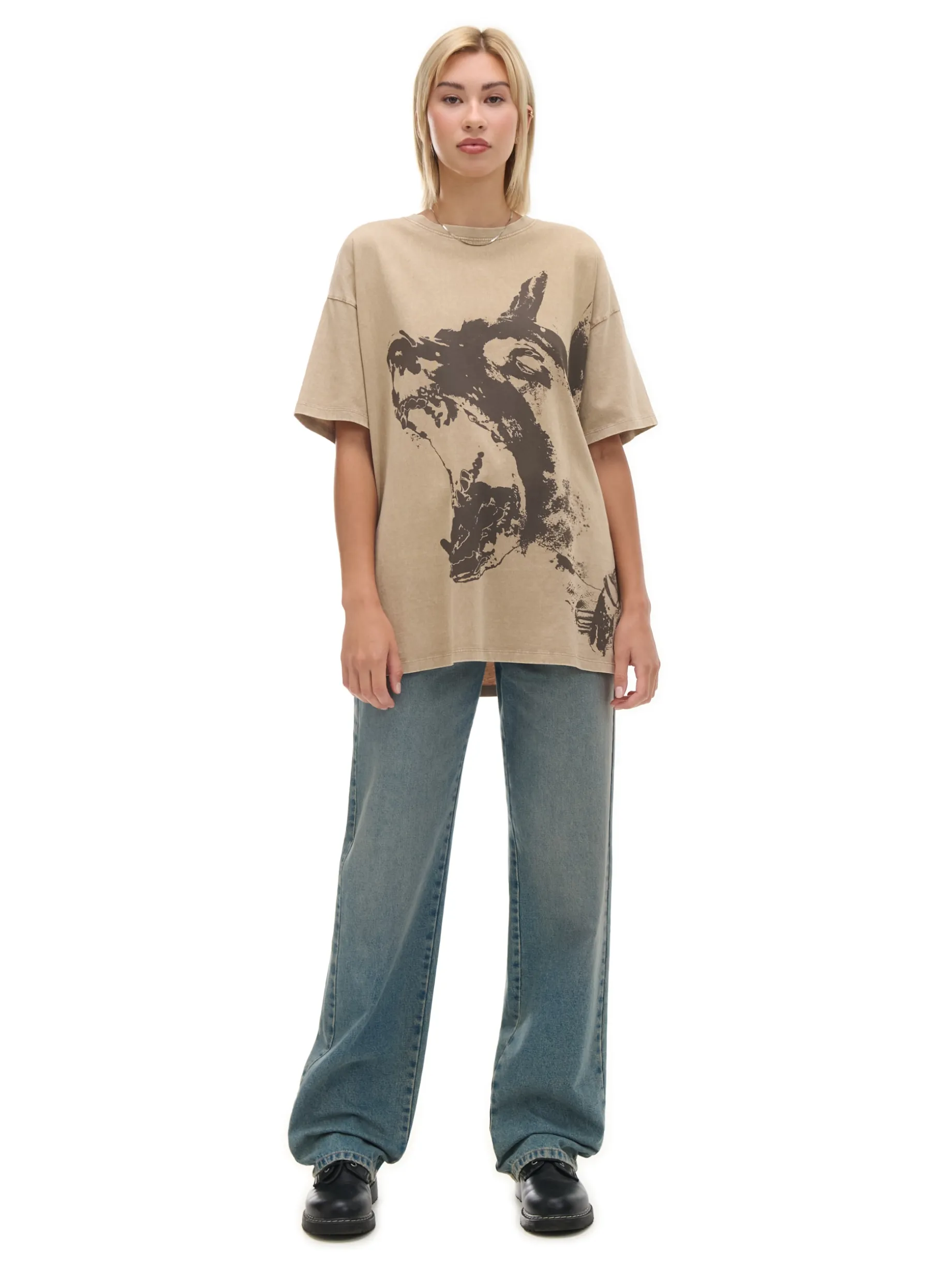 Damska koszulka z krótkim rękawem o kroju oversize, uszyta z bawełnianej dzianiny. Na przodzie duży nadruk z motywem szczekającego dobermana. Tylko dla odważnej! 100% bawełny krój oversize krótkie, swobodne rękawy zwierzęcy wzór Ten produkt należy do kolekcji UNISEX – zalecamy wybranie mniejszego rozmiaru niż zazwyczaj, jeśli chcesz uniknąć efektu oversize.