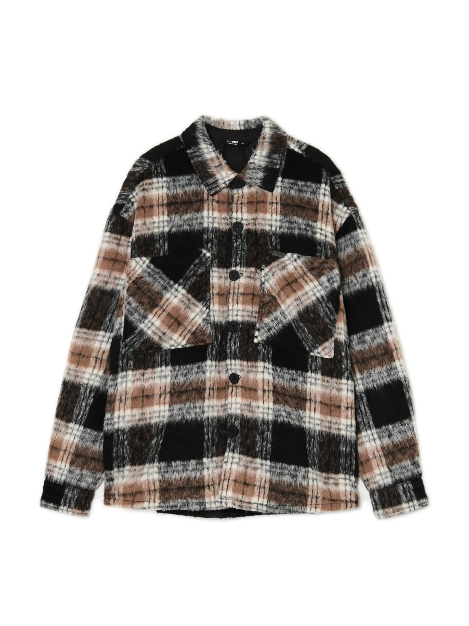 Jesienne stylizacje mode on! Męska koszula uszyta z solidnej tkaniny z efektem długiego włosa. Wygodne zapięcie na guziki i 4 praktyczne kieszenie zapewniają komfort. Ciepło gwarantuje podszewka i przyjemny w dotyku materiał. uszyta z solidnej tkaniny wygodny krój comfort zapięcie na guziki na całej długości klasyczny kołnierzyk długie rękawy zakończone mankietem z guzikiem dwie naszywane kieszenie piersiowe dwie kieszenie po bokach wzór w kratę na całej powierzchni Wzrost modela: 185 cm