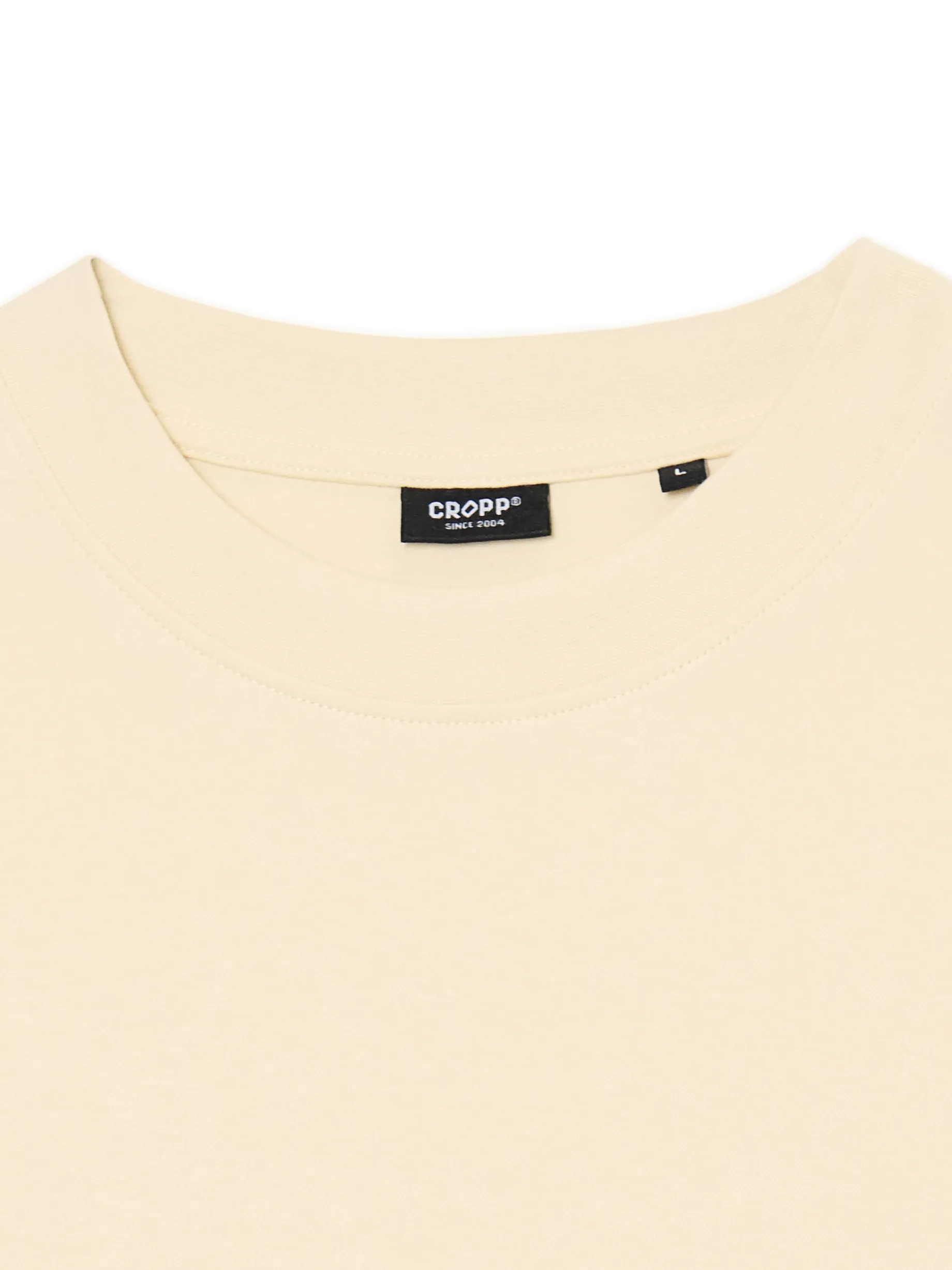 Męski kremowy T-shirt z krótkim rękawem, uszyty z gładkiej bawełny. Basic, który warto mieć w szafie! 100% bawełny koszulka typu basic krótkie, szerokie rękawy zabudowany dekolt z lamówką
