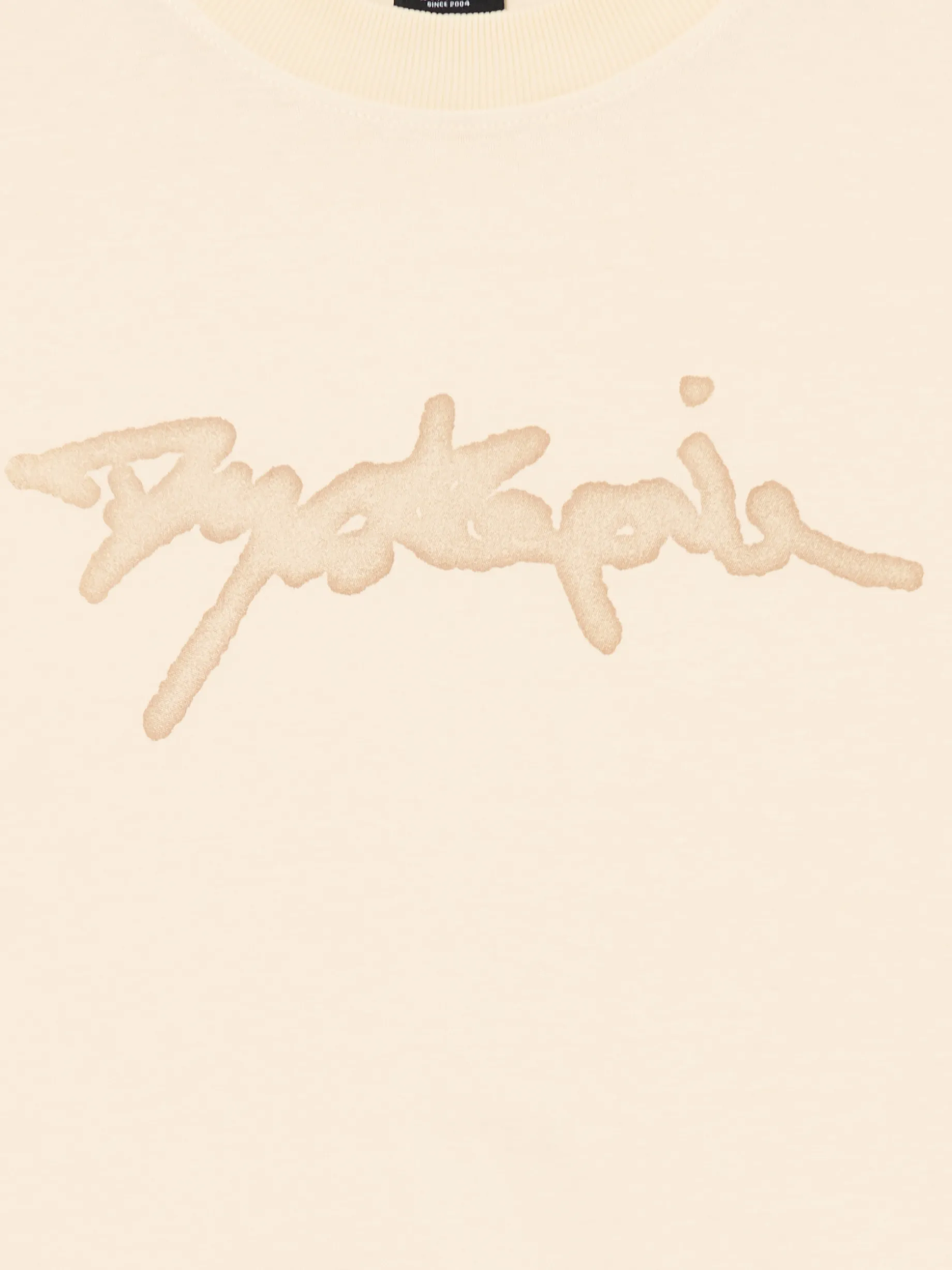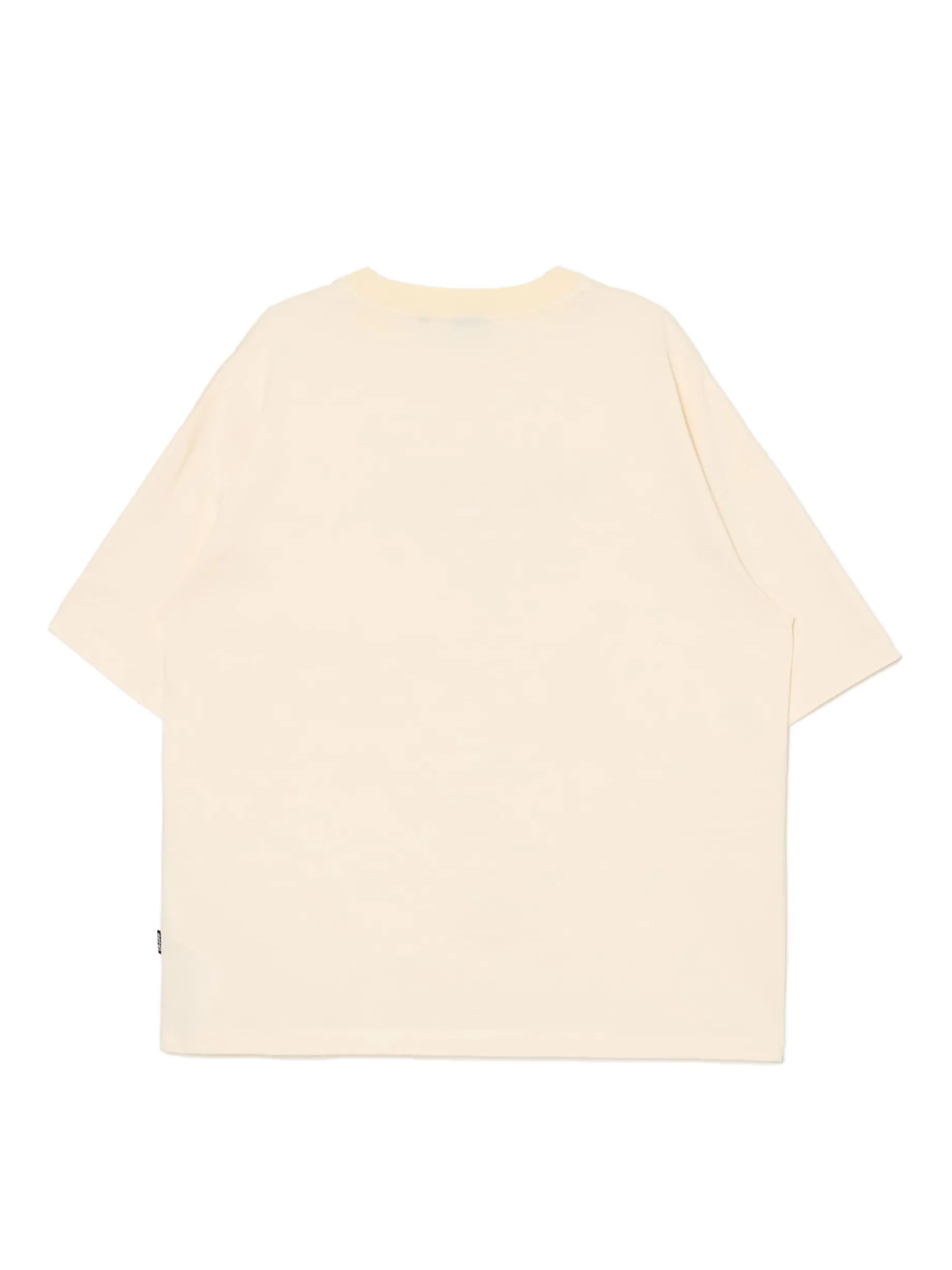 Męska koszulka w kroju boxy, uszyta z bawełny w kolorze kremowym z nadrukiem tekstowym. Fituje z każdym rodzajem spodni! 100% bawełny obszerny krój boxy krótkie, szerokie rękawy obniżona linia ramion napis z przodu efekt sprania na całości Wzrost modela: 185 cm