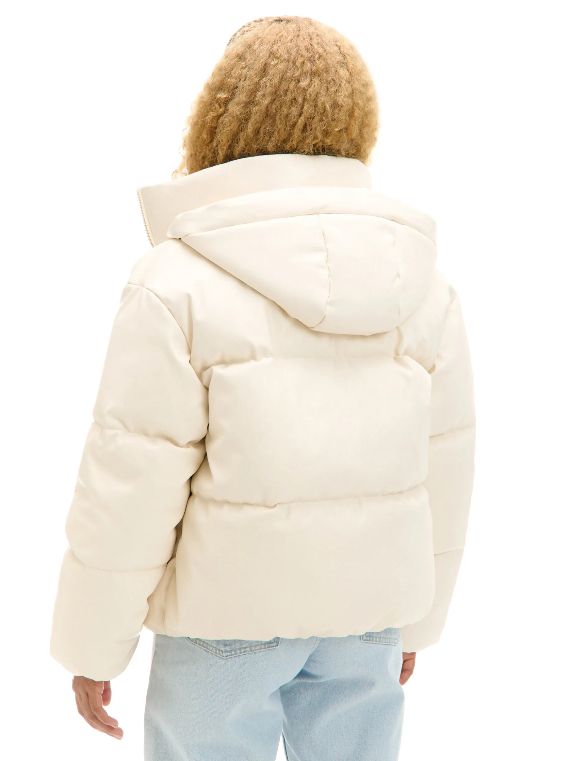 Kremowa kurtka puffer z kapturem