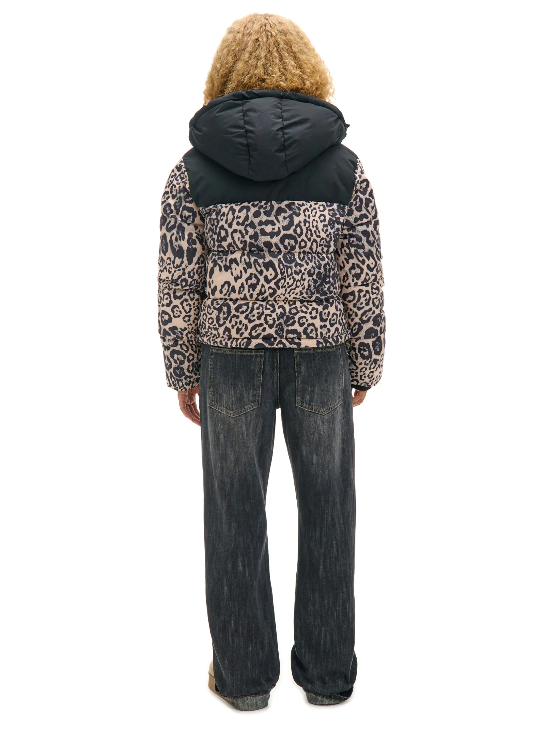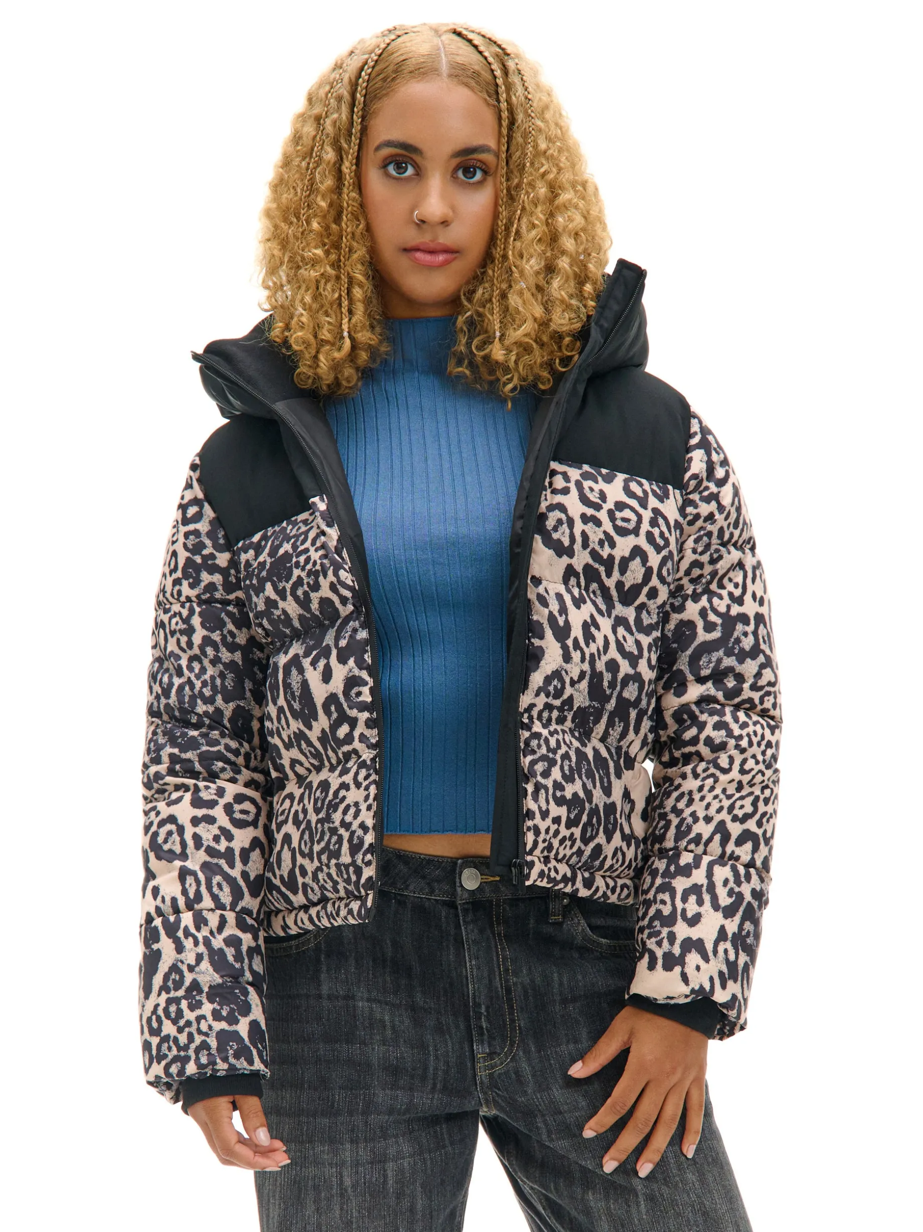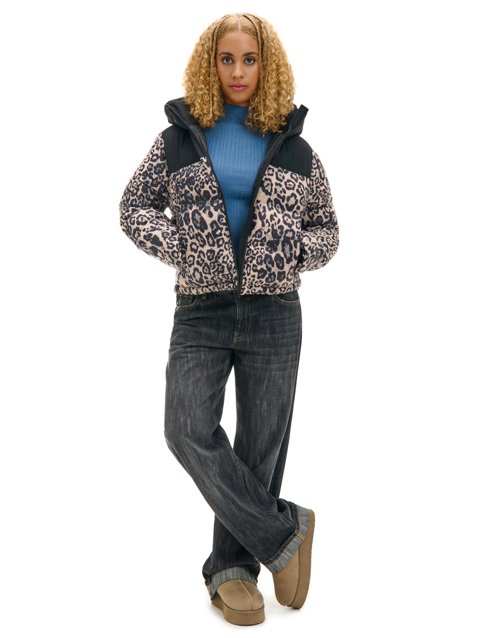 Zimowe modowe szaleństwo czas zacząć od wyboru oryginalnej kurtki. Mamy kilka propozycji, w tym damską pikowaną pufferkę ze wzorem w panterkę i gładką górą. Poza praktycznymi rozwiązaniami wygląda sztosowo ze sportowymi i casualowymi stylizacjami. ciepła pikowana kurtka typu puffer krótki krój zapięcie na zamek na całej długości wysoki kołnierz z odpinanym, regulowanym kapturem przy kapturze ściągacze zapinane na zatrzaski długie rękawy wykończone elastycznym ściągaczem regulacja dołu za pomocą gumek ze stoperami kieszenie boczne z zamkami