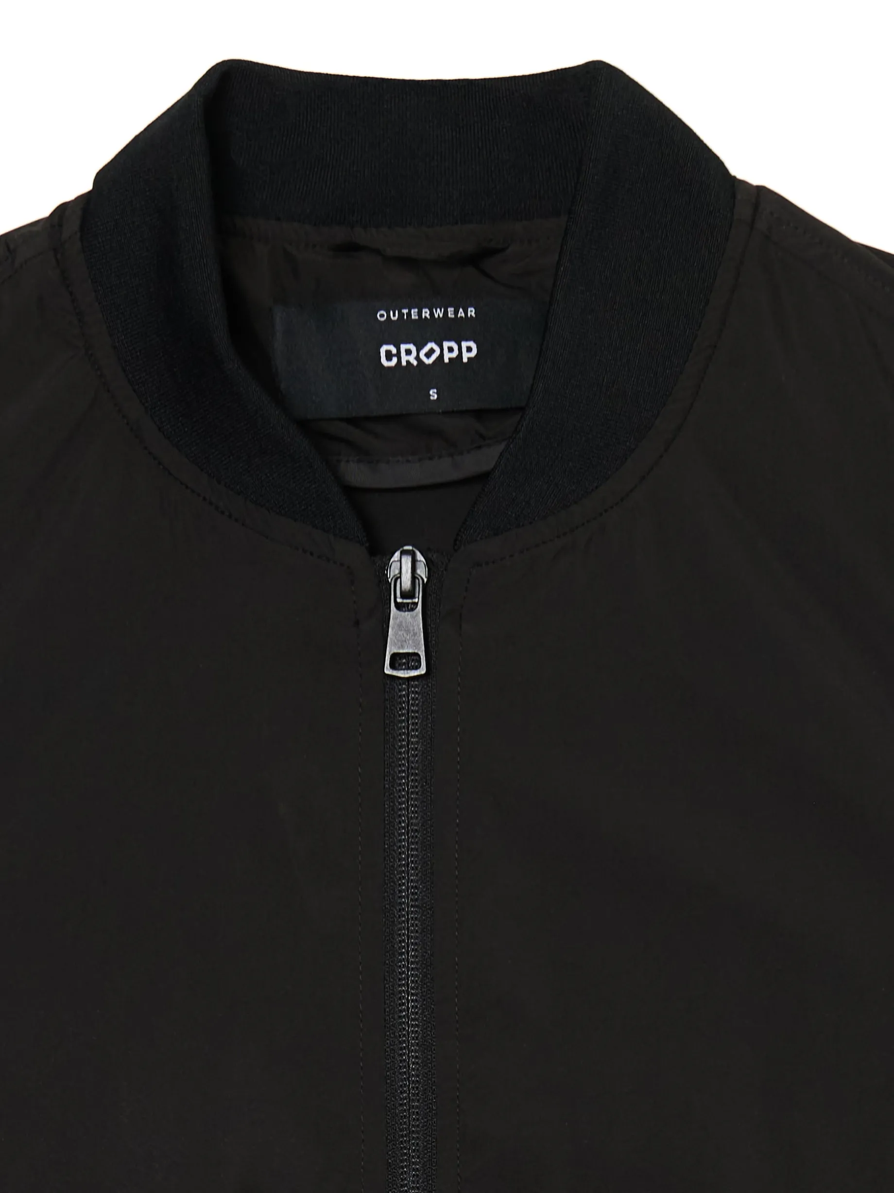 Damska czarna kurtka o kroju bomber, uszyta z lekkiej, gładkiej tkaniny. Idealna do outfitów all black. klasyczny, regularny krój długie rękawy i dolny brzeg zakończone elastyczną gumką zapięcie na suwak dwie kieszenie dostępna w innych kolorach