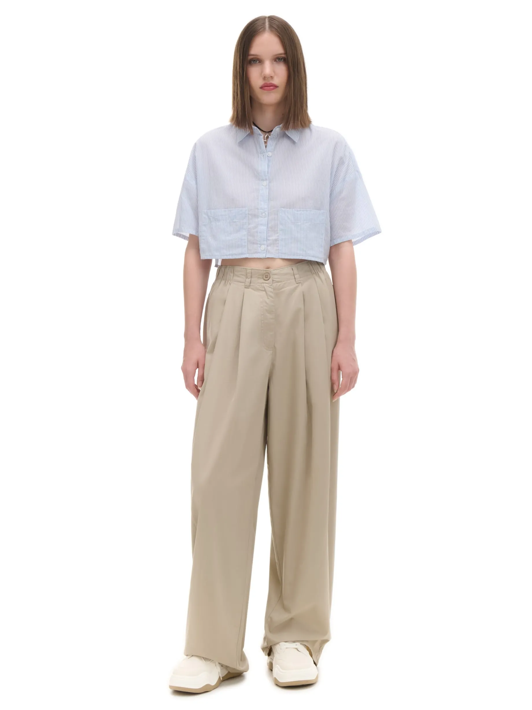 Luźna niebieska koszula crop