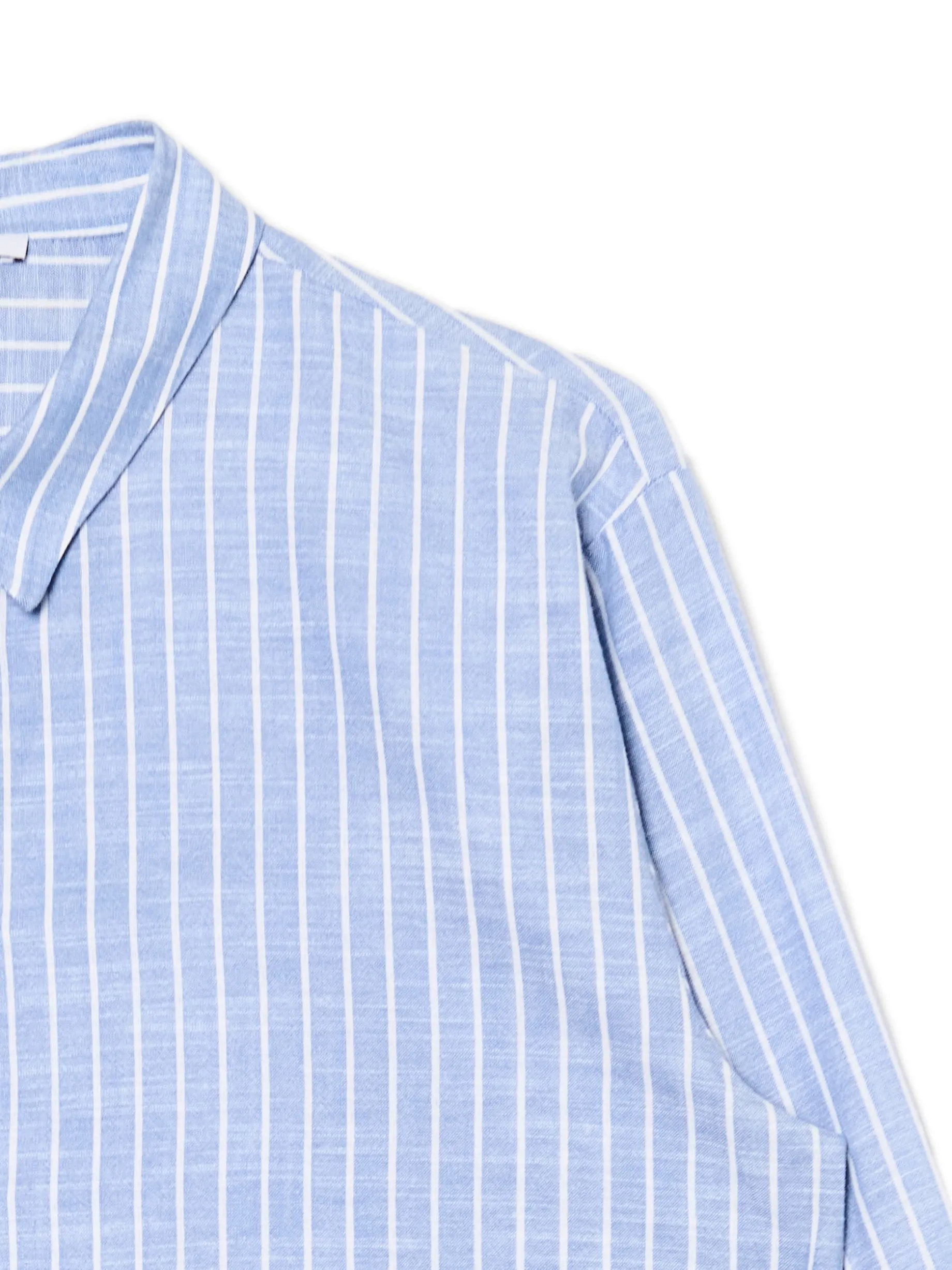 Niebieska krótsza koszula w pionowe paski