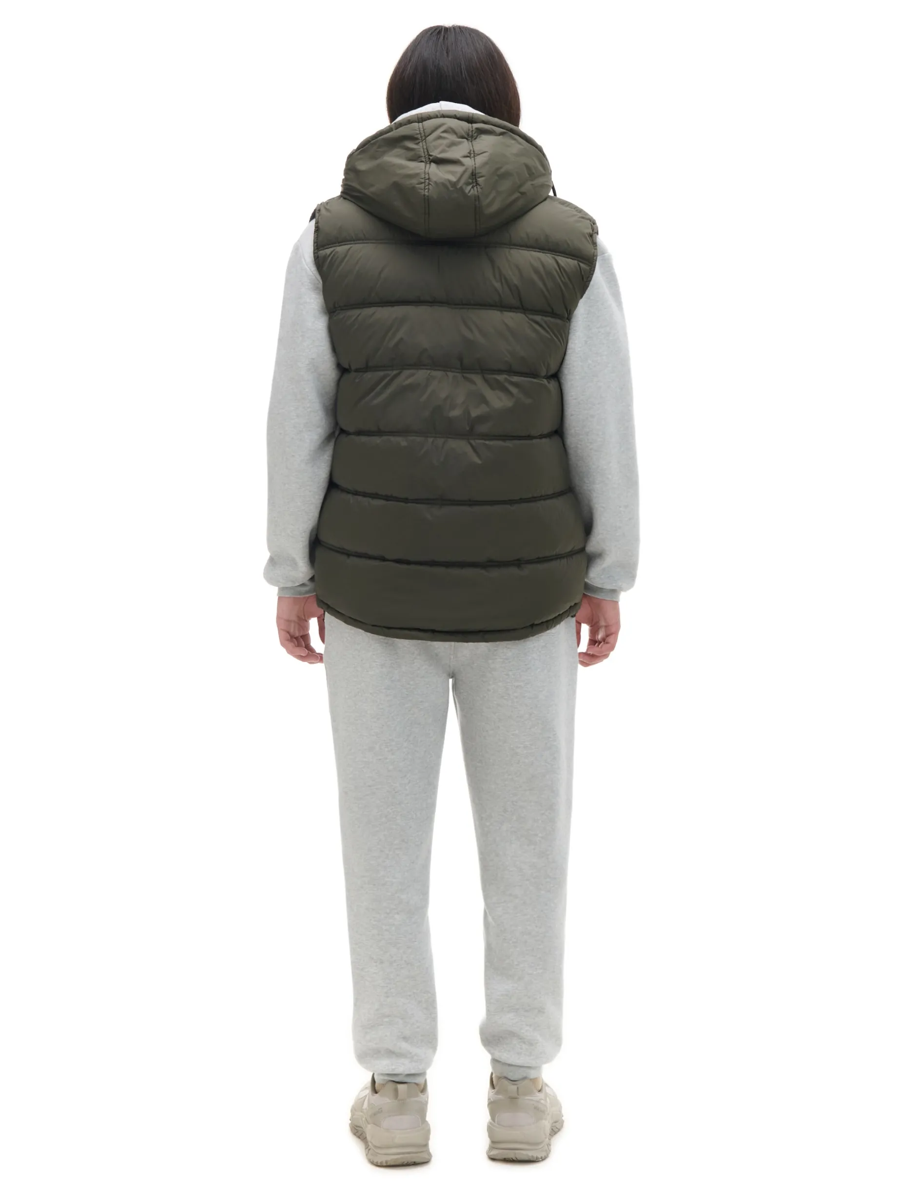 Oliwkowa pikowana kamizelka z kapturem