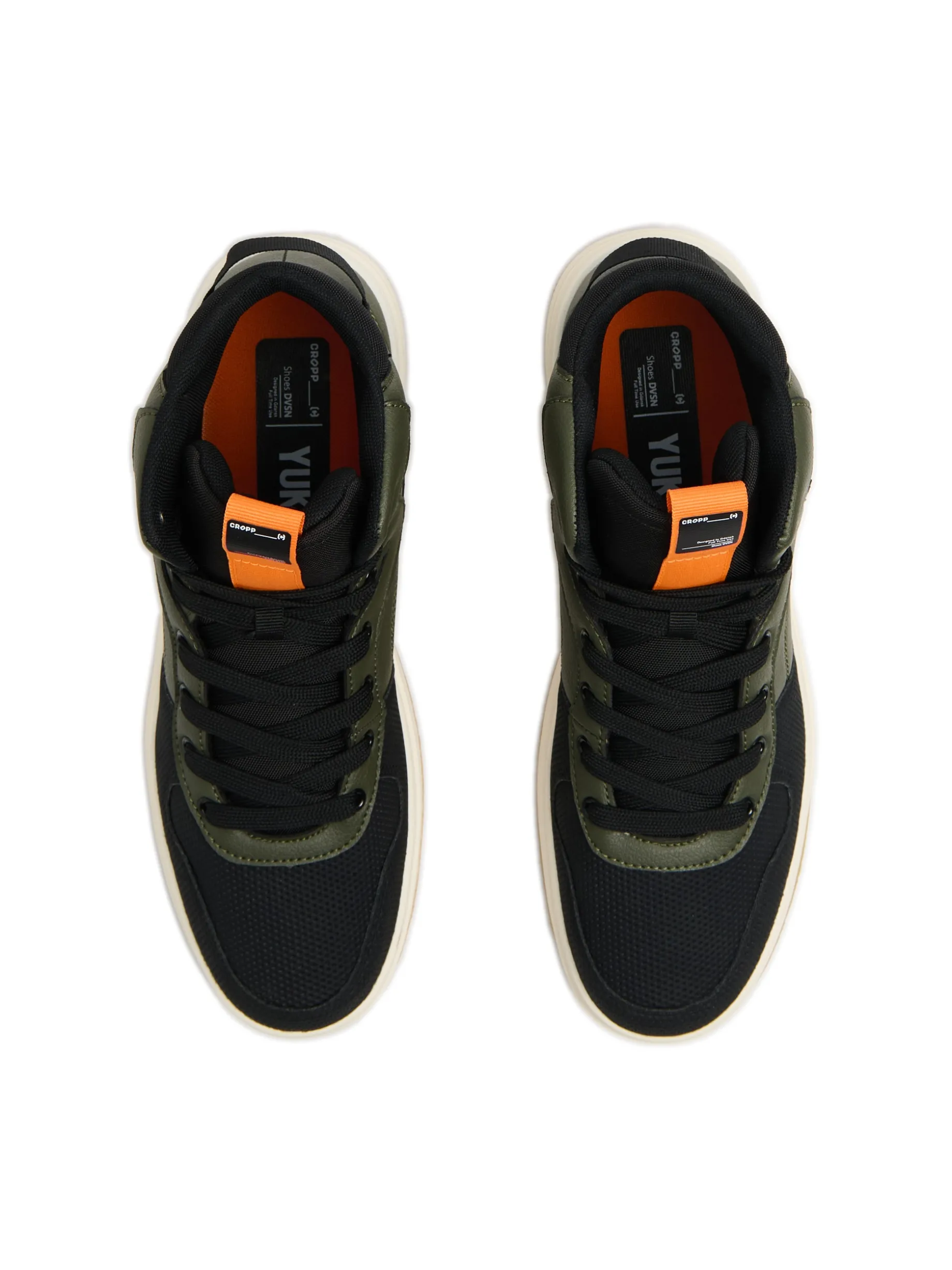 Męskie sneakersy za kostkę za sezon przejściowy w streetowym stylu. Na cholewce wstawki z efektem skóry. Dodatkowo miękka wyściółka wokół kostki zapewniająca komfort noszenia. A na tej solidnej, elastycznej podeszwie uważaj, żebyś nie odleciał. cholewka ze wstawkami ze sztucznej skóry lekkie gąbkowanie wokół kostki grubsza podeszwa z gumy termoplastycznej wiązane na płaskie, czarne sznurowadła wygodny uchwyt do wkładania i zdejmowania butów ozdobna naszywka z przodu naszywka Cropp