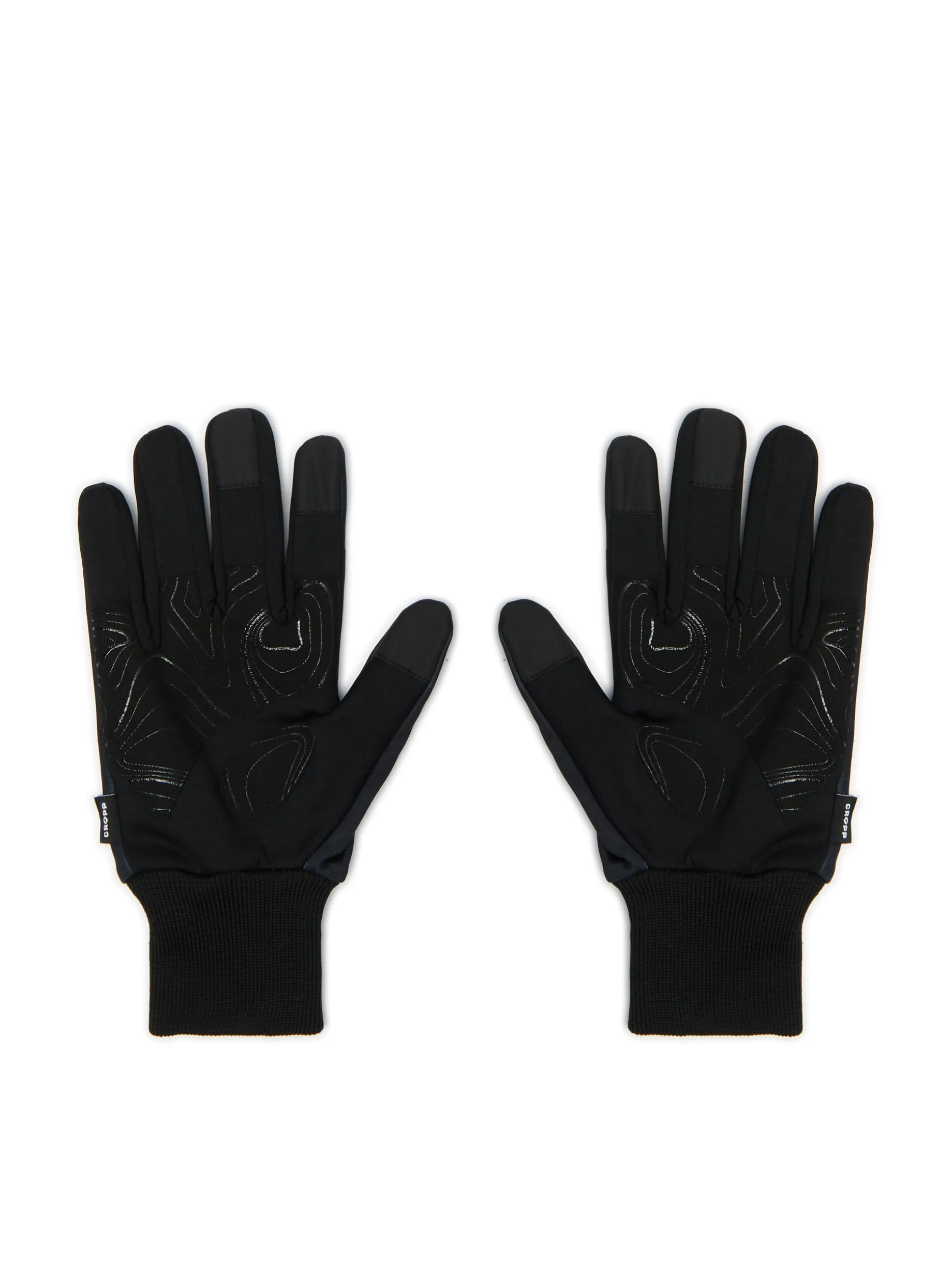 Męskie pięczopalczaste rękawiczki ze sztosowymi, punkowymi nadrukami w kontrastowym, białym kolorze. dzianina z domieszką elastycznych włókien wewnętrzna matowa strona ograniczająca ślizganie się materiału ściągacze utrzymujące materiał przy nadgarstach dodatkowe wstawki przy palcach dla wzmocnienia kontrastowy nadruk z przodu naszywka Cropp
