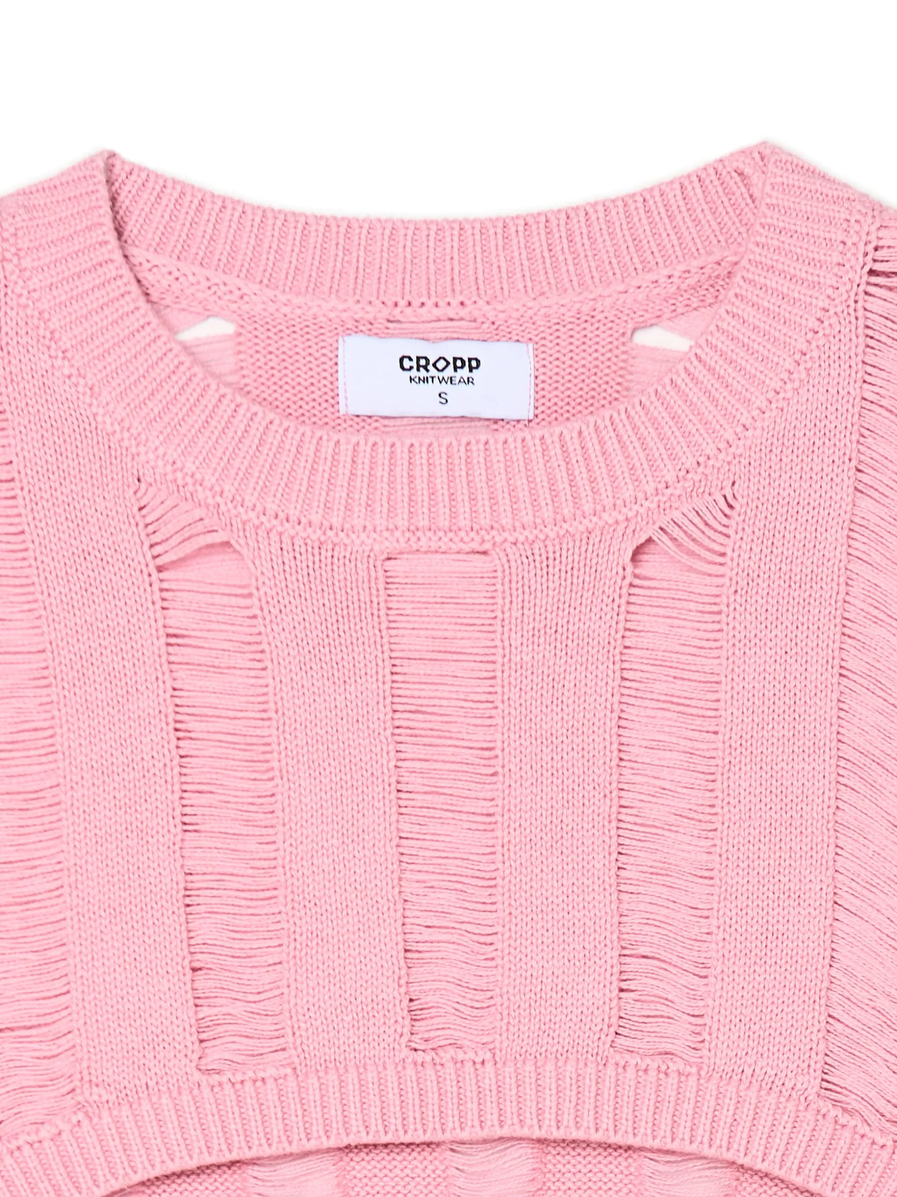 Damski różowy sweter o krótszym kroju uszyty z bawełny. Delikatne prześwity stanowią ozdobę tego modelu i idealnie fitują zarówno z topami, jak i sukienkami. 100% bawełny krótki krój długie, swobodne rękawy półokrągły dekolt wykończony ściągaczem