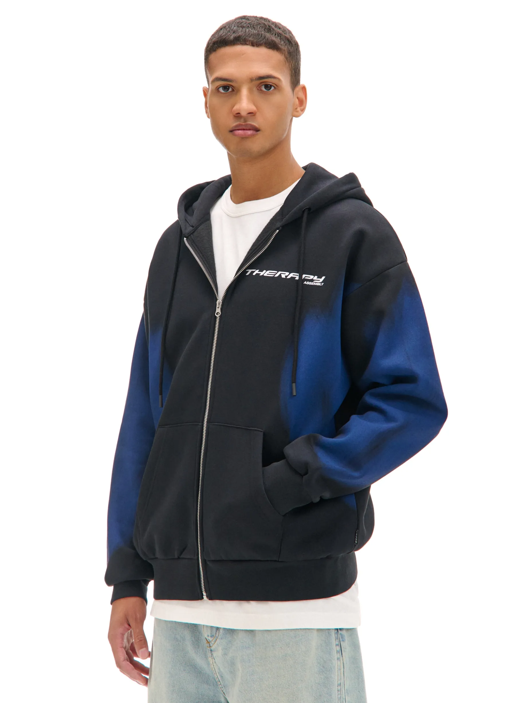 Warto mieć w szafie zarówno sprawdzony basic, jak i nieszablonowy item. Proponujemy tę rozpinaną męską bluzę z kapturem wykonaną z mieszanki dzianin z miękką bawełną french terry. Na całości nieregularne nadruki metodami spray i digital print. dzianinowy materiał z bawełną swobodny, luźny krój zapięcie na zamek na całej długości miękki kaptur z troczkami dół i rękawy wykończone prążkowanym ściągaczem dwie kieszenie po bokach kontrastowy napis z przodu nadruki z przodu, na plecach i na rękawie
