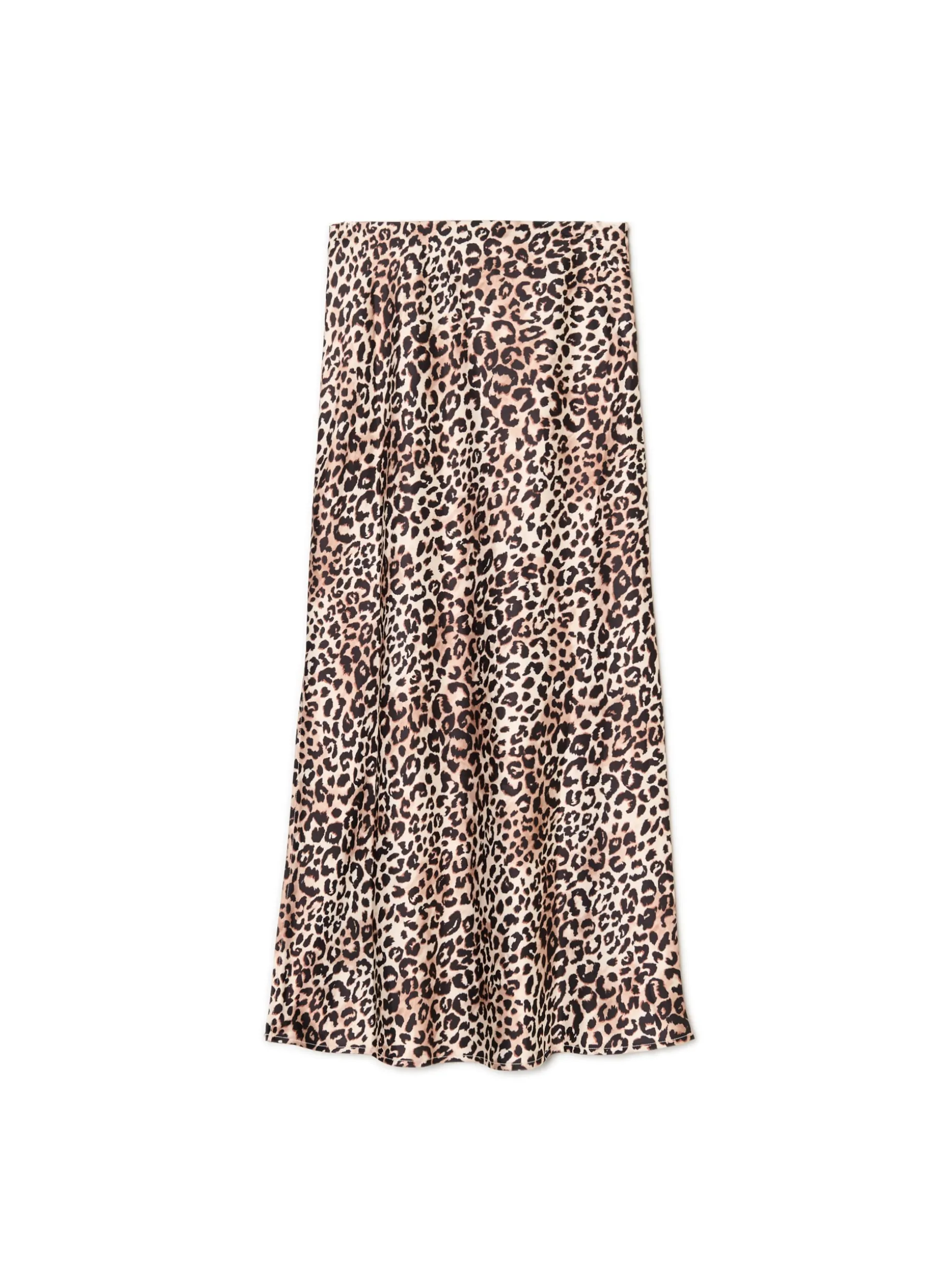 Damska spódnica o swobodnym kroju, uszyta z lekko połyskującej tkaniny ze zwierzęcym wzorem na całości. Dodatek elastycznych włókien sprawia, że pięknie układa się podczas chodzenia. tkanina z dodatkiem elastycznych włókien długość midi lekko rozkloszowany dół elastyczna gumka w pasie zwierzęcy wzór