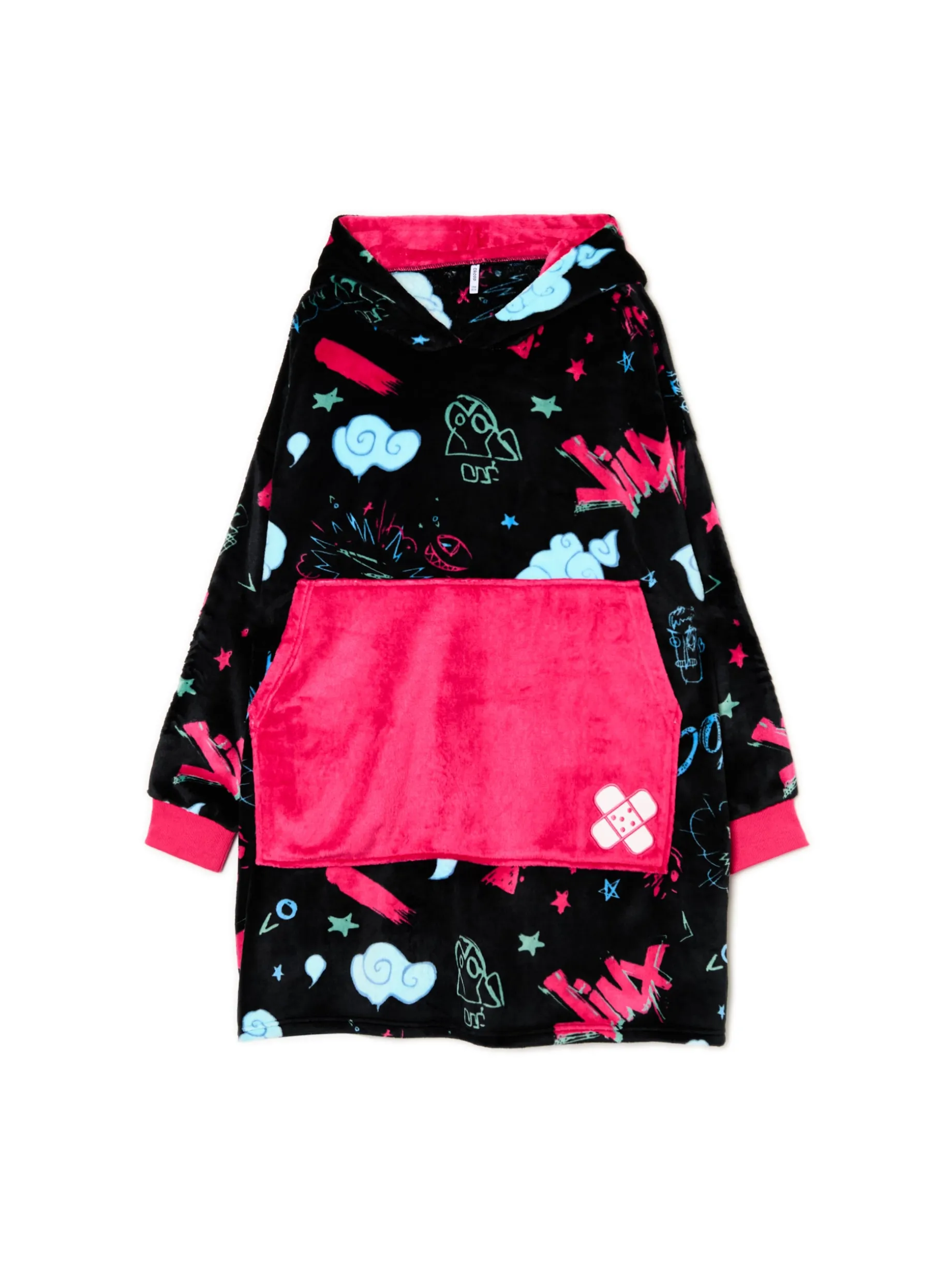 Damska bluza snuddie stworzona z myślą o fandomie Arcane. Idealny cosplay do oglądania nowego sezonu serialu. Uszyta z przyjemnego w dotyku materiału z dużą kieszenią typu kangurka na Twoje ulubione snacki. uszyta z miękkiego, pluszowego materiału swobodny, luźny krój miękki kaptur długie rękawy wykończone elastycznym ściągaczem duża kieszeń typu kangurka z przodu nadruk Arcane all over © 2024 Riot Games, Inc. RIOT GAMES, ARCANE LEAGUE OF LEGENDS and any associated logos are trademarks, service marks, and/or registered trademarks of Riot Games, Inc.
