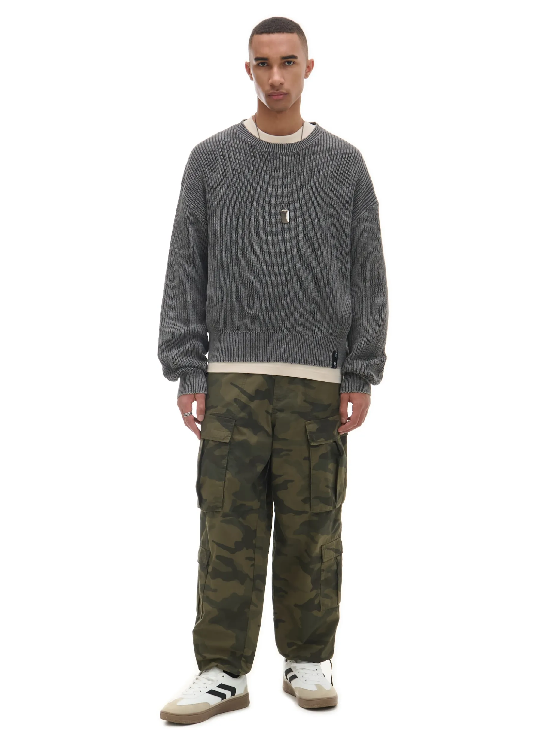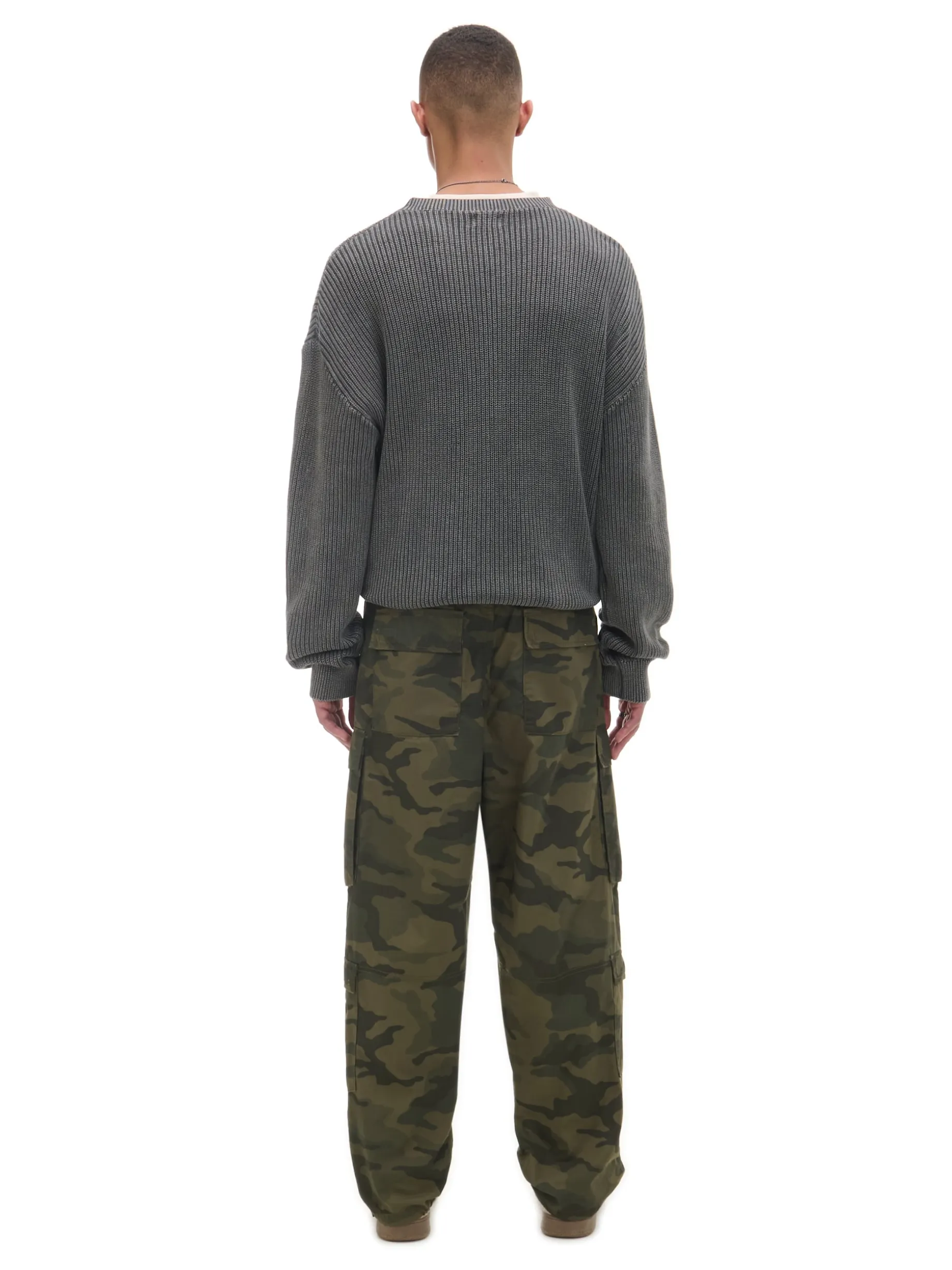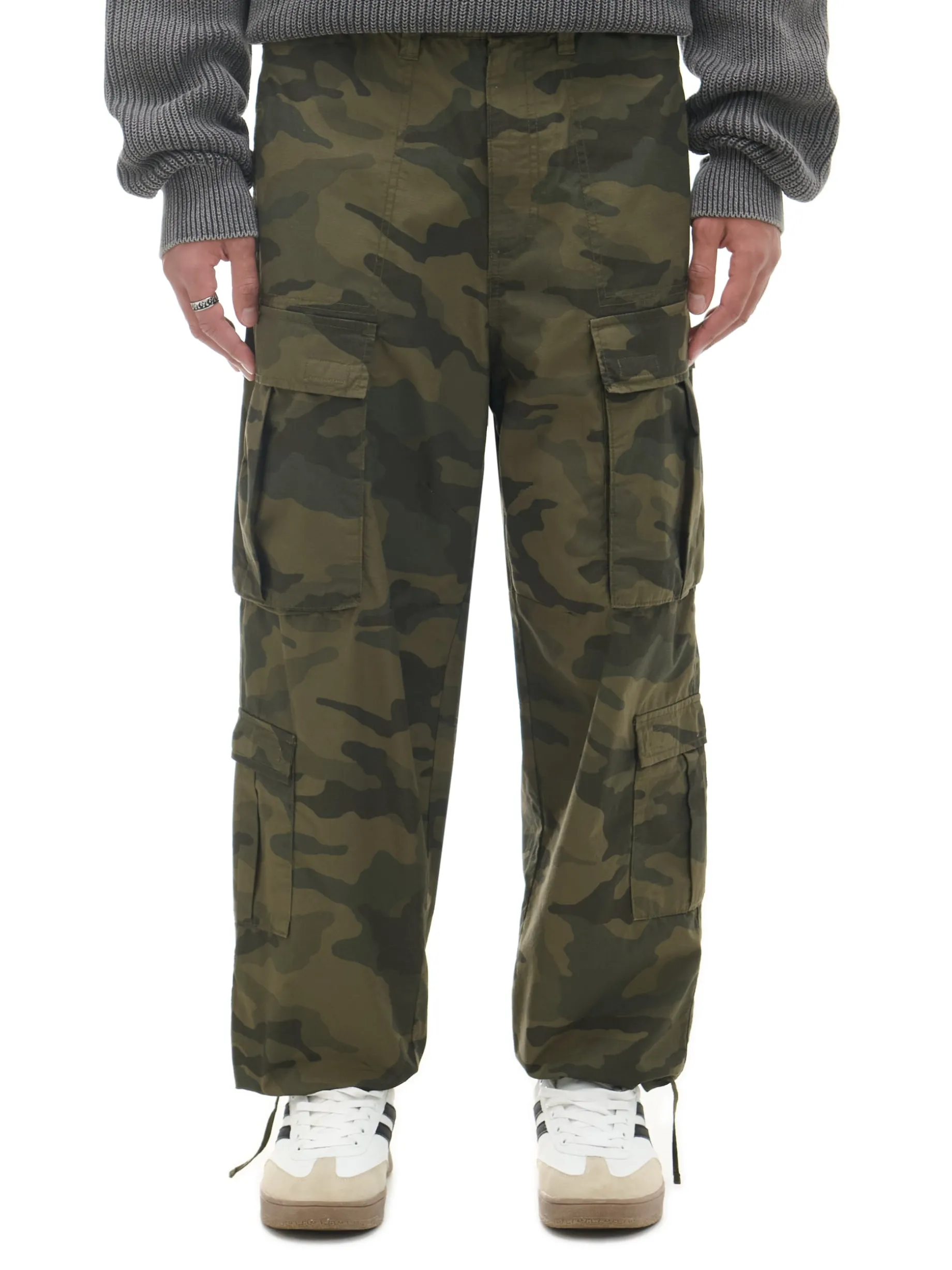 Męskie spodnie typu cargo, uszyte z solidnej tkaniny o wysokiej zawartości bawełny. Na całości pojemne kieszenie i charakterystyczny wzór moro. Gotowe na każdą okazję! dzianinowy materiał z bawełną wygodny krój comfort zapięcie na zamek i guzik w pasie od wewnątrz wszyta gumka długie, swobodne nogawki zakończone ściągaczem otwarte kieszenie z przodu cztery kieszenie z patkami z przodu dwie kieszenie tylne z zapięciem na rzepy szlufki na pasek wzór moro all over Wzrost modela: 185 cm