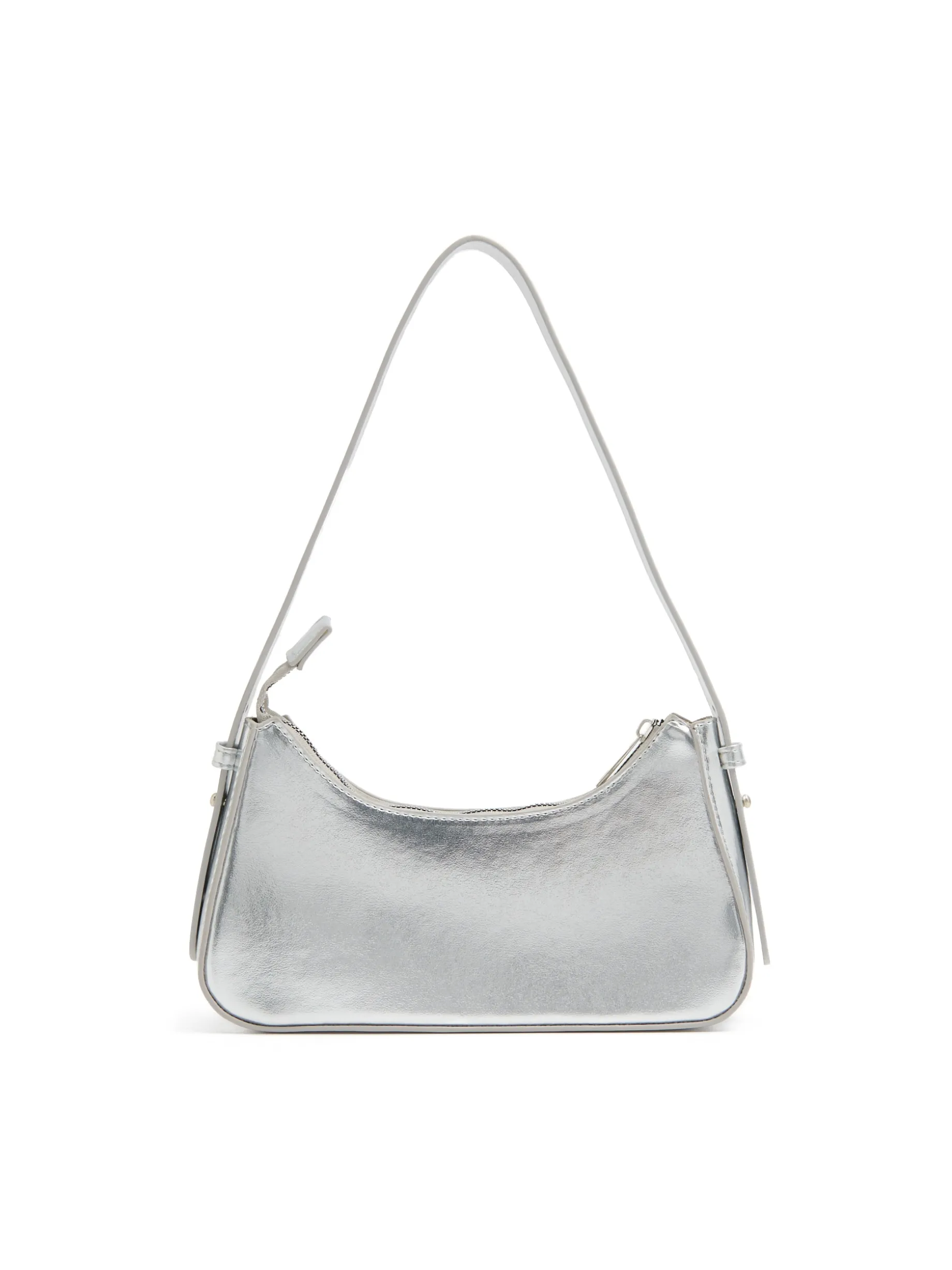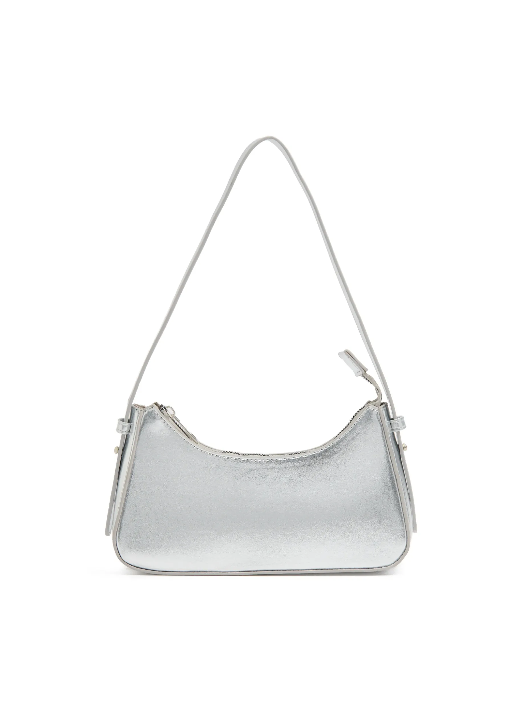Nieszablonowy dodatek imprezowych stylizacji! Damska mała torebka wykonana z imitacji skóry w kolorze srebrnym. Zapinana na zamek i wyposażona w pasek z tego samego materiału, regulowany po bokach. Warto mieć ten sztosowy item pod ręką. mała torebka z imitacji skóry główna komora z zapięciem na zamek pasek z regulacją długości wewnątrz otwarta kieszeń naszywka Cropp