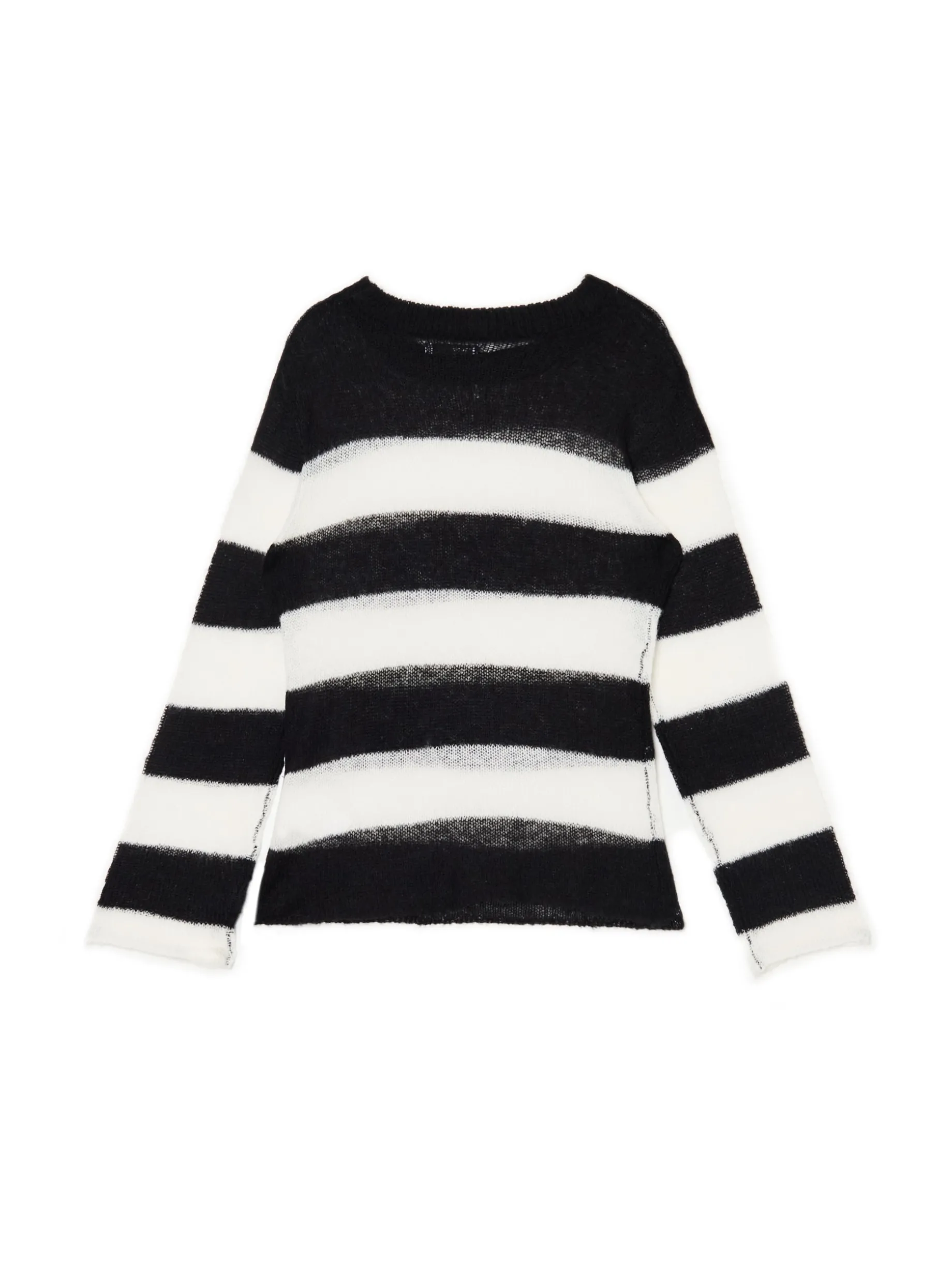 Damski sweter uszyty z półtransparentnej mieszanki dzianin ze wzorem w paski. Idealny item, który otuli Cię w chłodne wieczory! uszyty z trwałego materiału długie, dopasowane rękawy półokrągły dekolt z lamówką surowe wykończenie brzegów Wzrost modelki: 177 cm