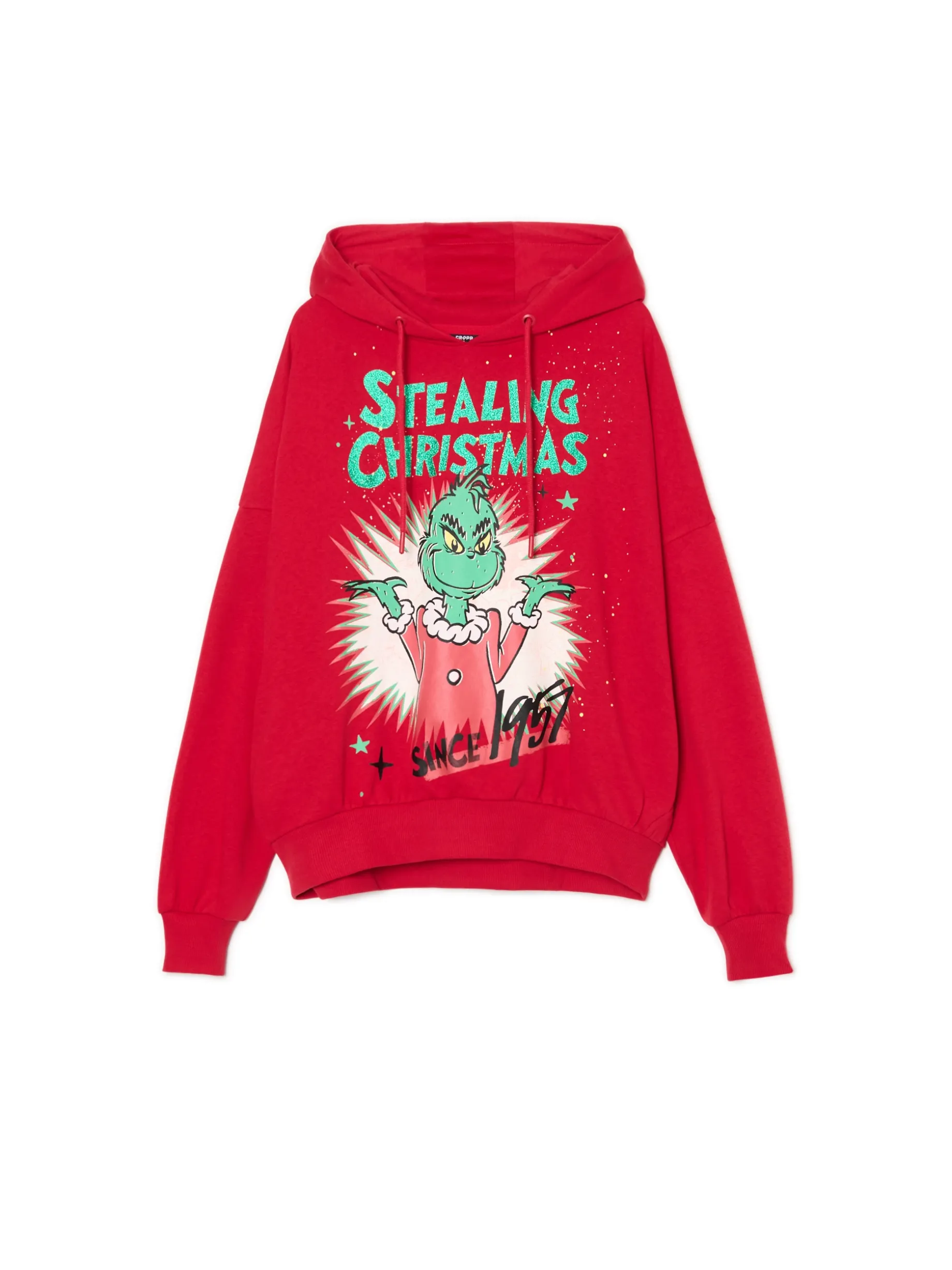 Może razem z tym włochatym, zielonym stworem uda Wam się podkraść jakieś smakołyki ze stołu? Damska bluza typu hoodie w świątecznym, czerwonym kolorze, z podobizną Grincha, już czeka na Ciebie. uszyta z miękkiej dzianiny z bawełną regularny krój miękki kaptur z troczkami dół i rękawy wykończone prążkowanym ściągaczem nadruk z motywem Grincha TM & © 2024 Dr. Seuss Enterprises, L.P. All Rights Reserved