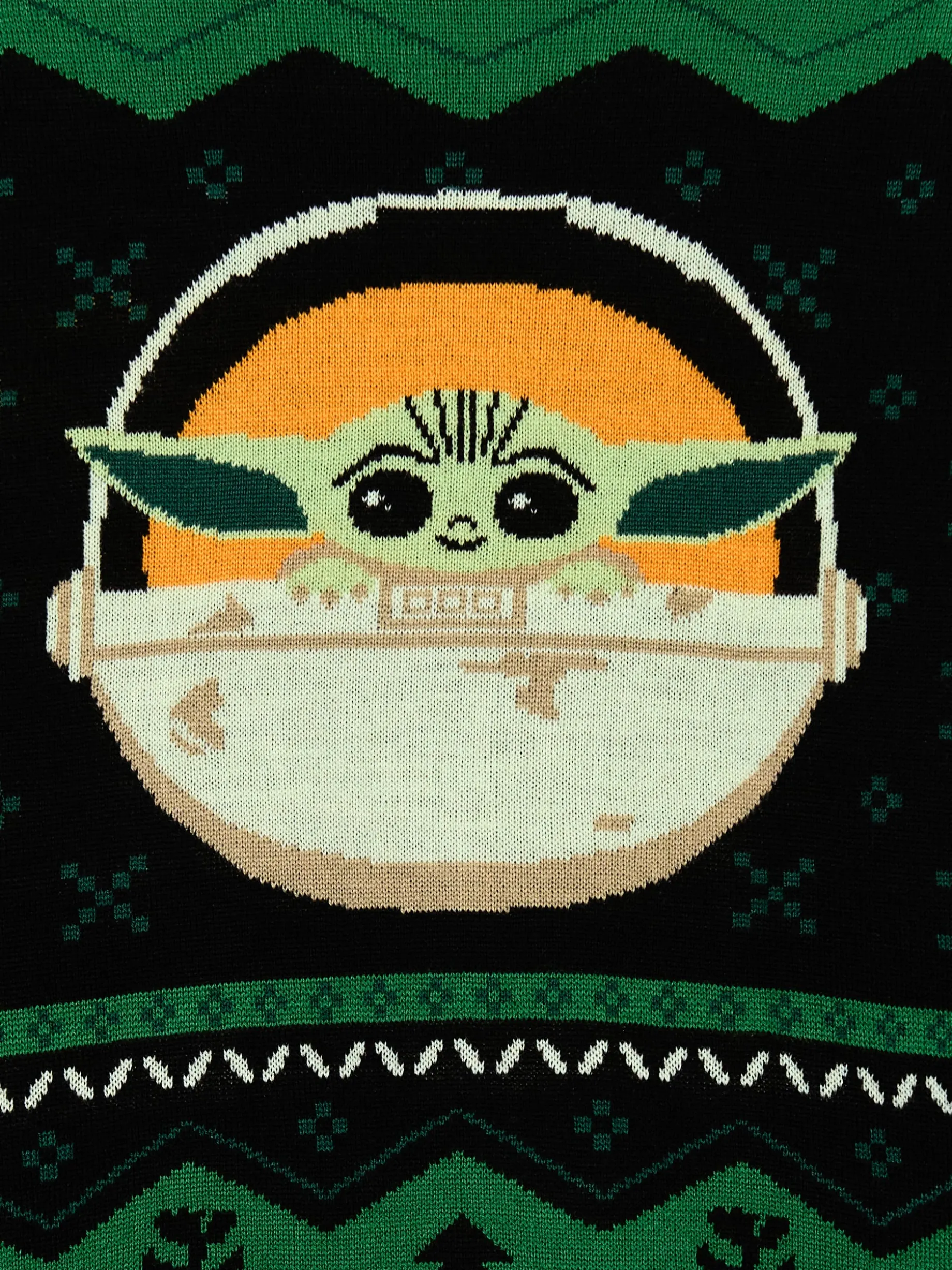 Przygarnij Baby Yodę na święta! Męski sweter o regularnym kroju, uszyty z miękkiej w dotyku, żakardowej dzianiny. Na całej powierzchni nadruki z bożonarodzeniowym motywem. Na środku dekoracyjna grafika z bohaterem serialu Mandalorian. Łap item! sweter o regularnym kroju okrągły dekolt z lamówką długie, swobodne rękawy delikatnie obniżona linia ramion dół i rękawy wykończone prążkowanym ściągaczem nadruk z motywem Xmas © & TM Lucasfilm Ltd.