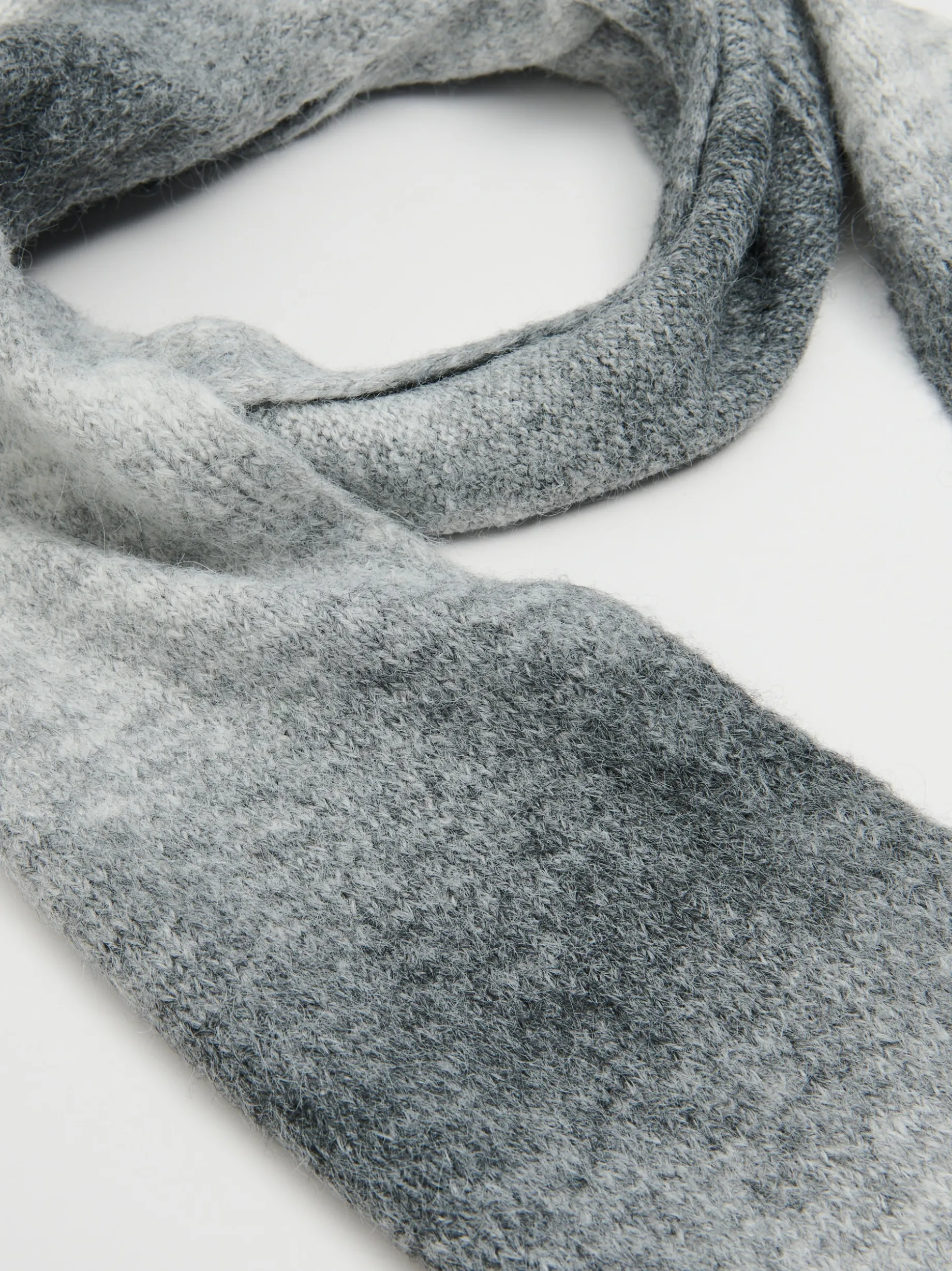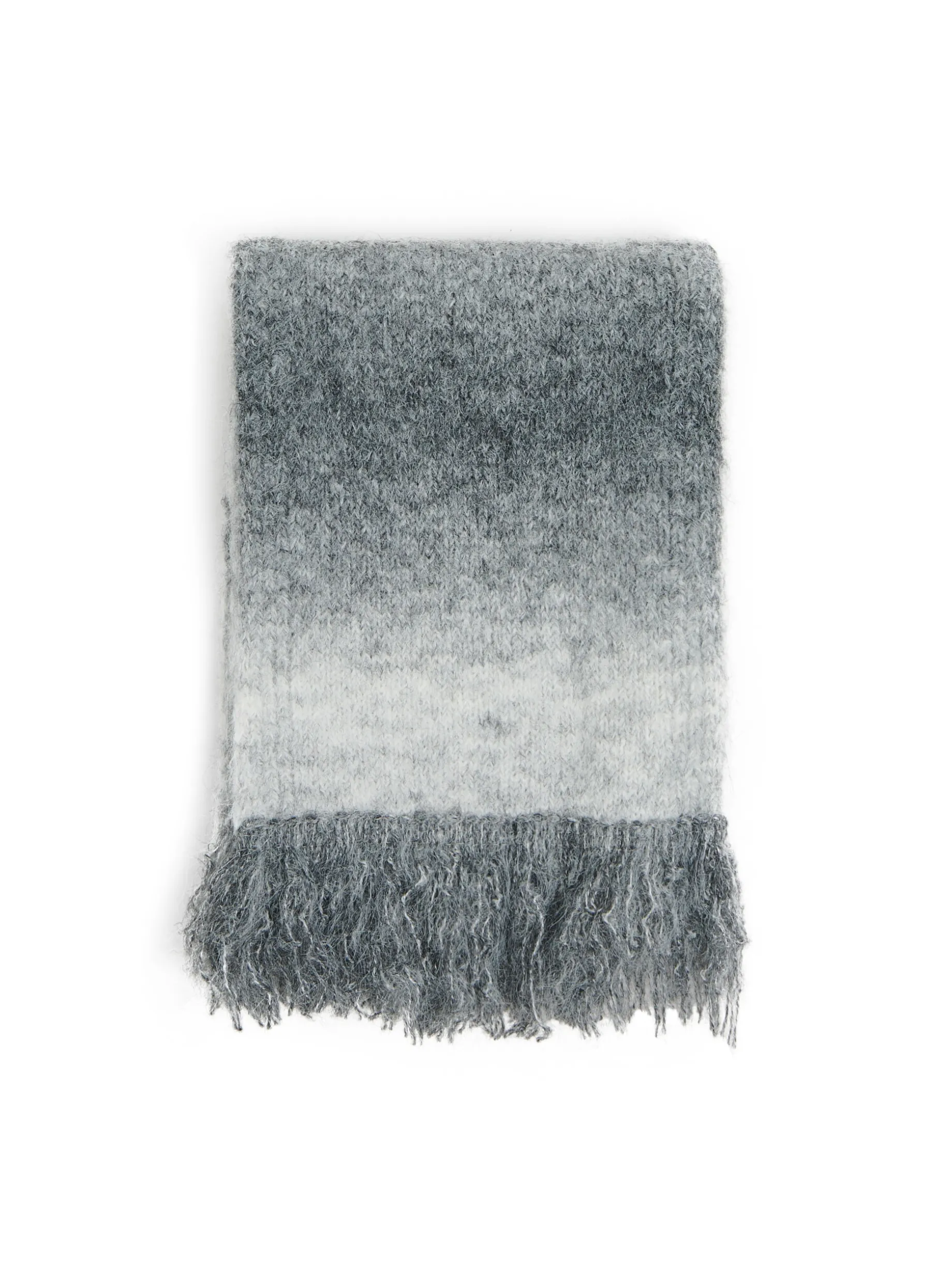 Łap damski szalik uszyty z mieszanki dzianin z dodatkiem wełny. Przyjemny w dotyku materiał i ozdobne frędzle na końcach nawiązują do klasycznego designu. Dekoracyjne cieniowanie na materiale, to znak nowoczesnego looku! uszyty z dzianiny zawierającej domieszkę wełny prosty krój długie, dekoracyjne frędzle na brzegach