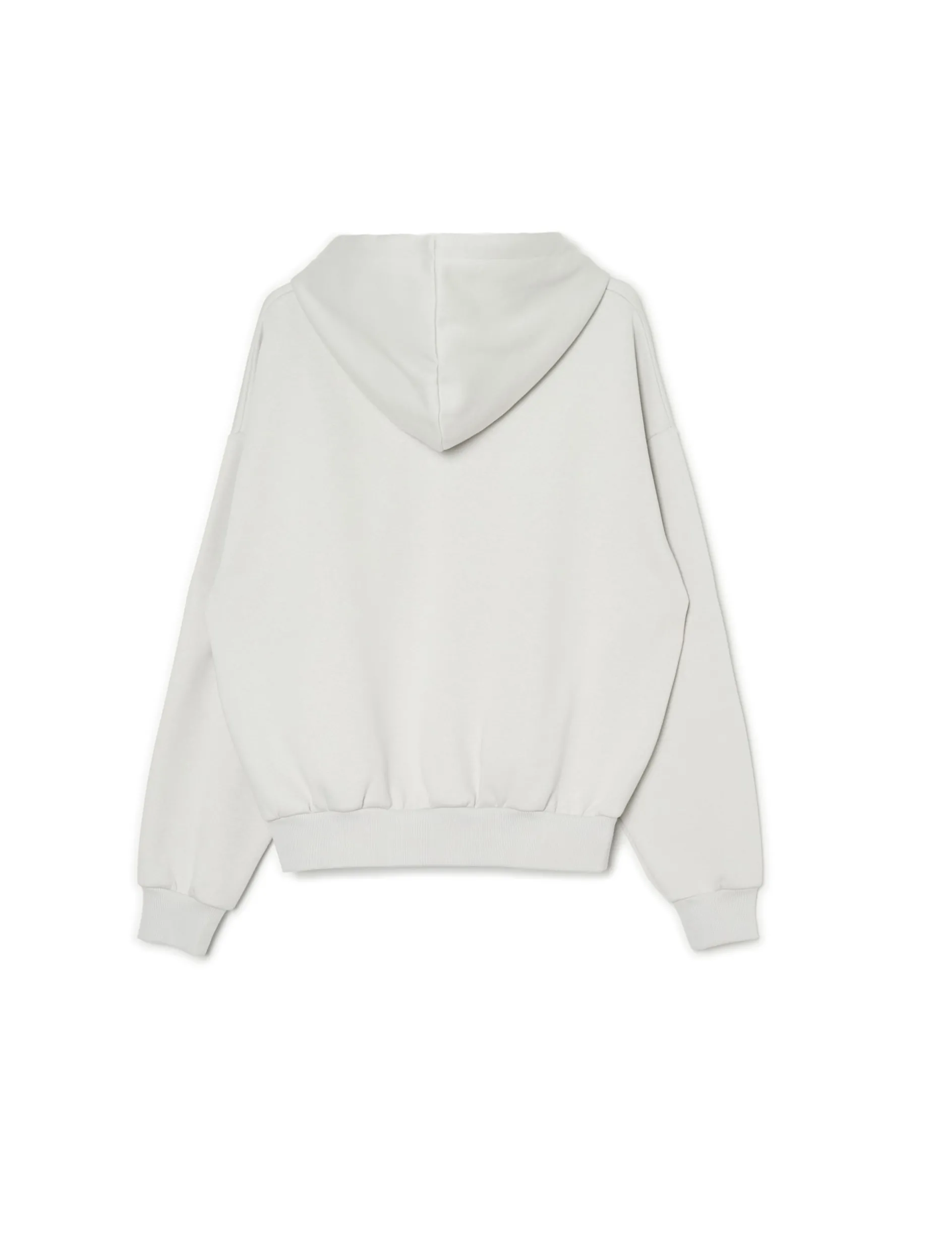Damska dresowa bluza w kolorze szarym, uszyta z dzianiny zawierającej bawełnę. obszerny krój boxy kaptur regulowany sznurkiem rękawy i dół ze ściągaczem z przodu duży nadruk tekstowy Ten produkt należy do kolekcji UNISEX – zalecamy wybranie mniejszego rozmiaru niż zazwyczaj, jeśli chcesz uniknąć efektu oversize.