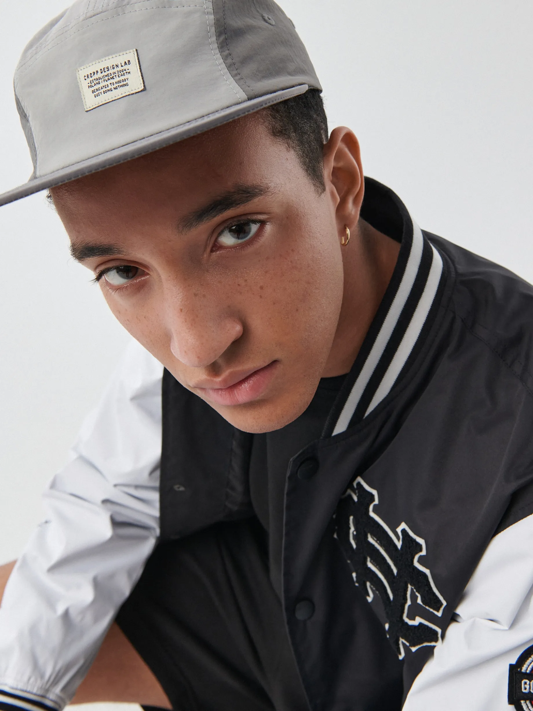 Męska czapka z daszkiem, utrzymana w szarej tonacji kolorystycznej. Z przodu naszywka z napisami. Możliwość regulacji za pomocą paska ze sprzączką. Dostępne inne wersje kolorystyczne. Produkt dostępny wyłącznie w sklepie internetowym.