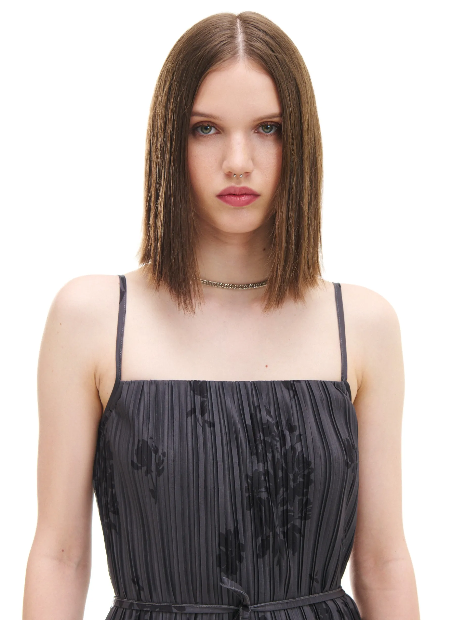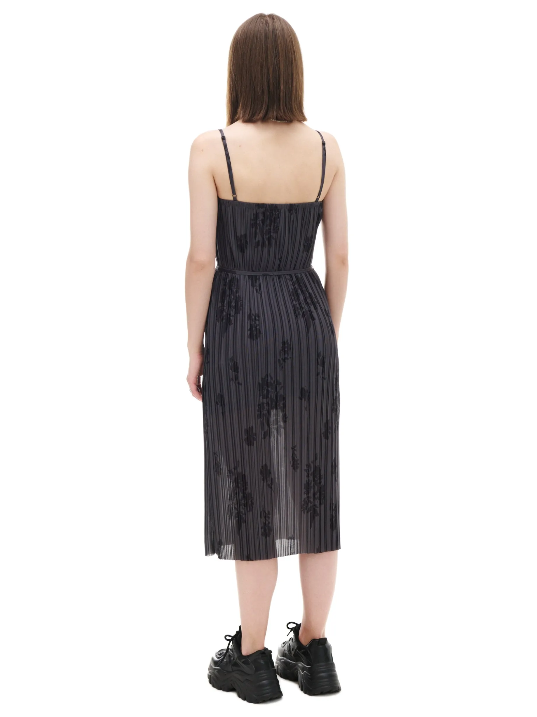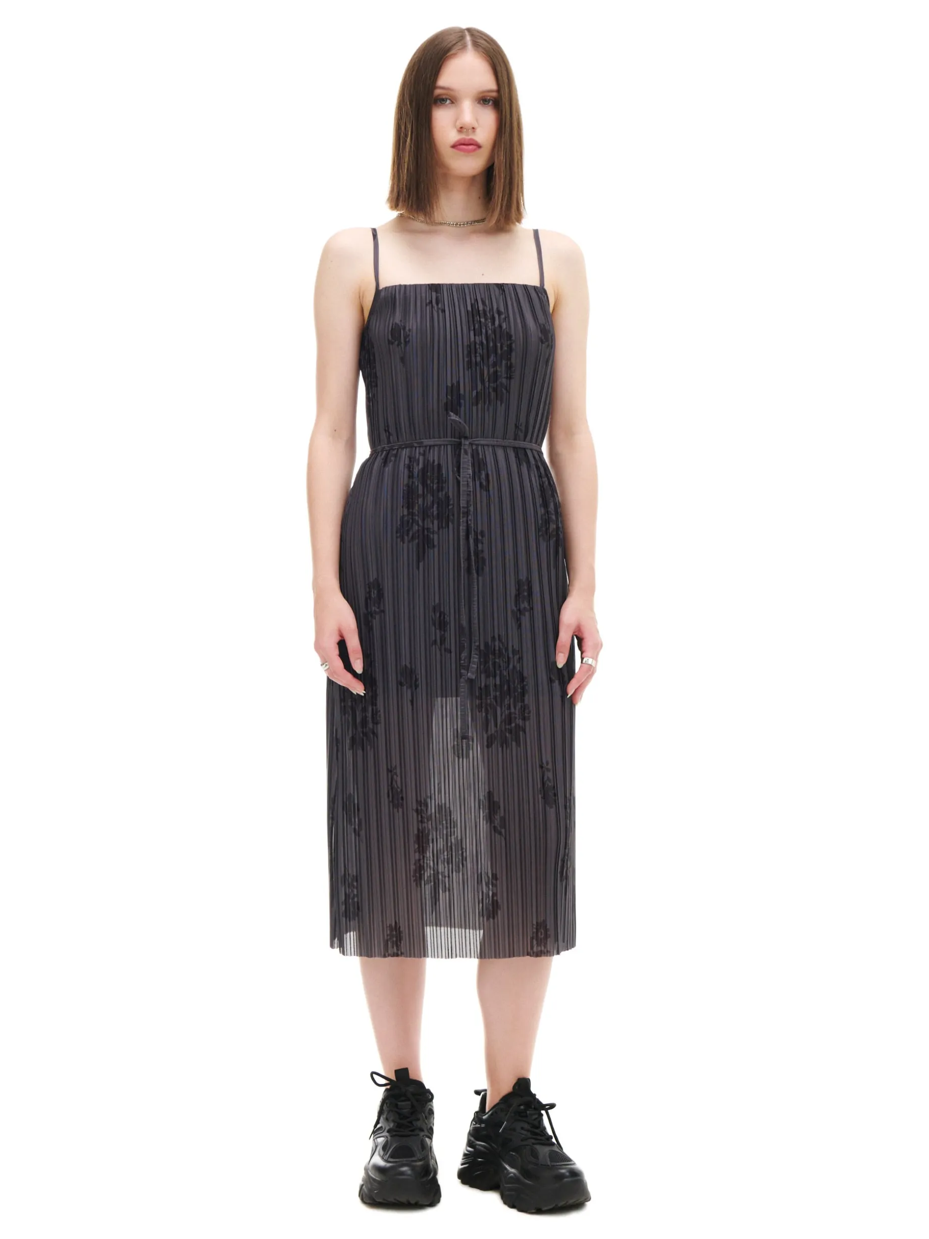 Damska sukienka o długości midi, uszyta z lekkiej tkaniny. Kwadratowy dekolt z wszytą gumką, regulowane ramiączka i ozdobne wiązanie zapewnią Ci komfort i dopasują ten model do Twojej sylwetki. lekki materiał ozdobne plisowanie długość midi wewnątrz gładka podszewka kwadratowy dekolt z wszytą elastyczną gumką wąskie ramiączka z regulacją długości ozdobne wiązanie praktyczne rozcięcie z tyłu kwiatowy wzór Wzrost modelki: 172 cm