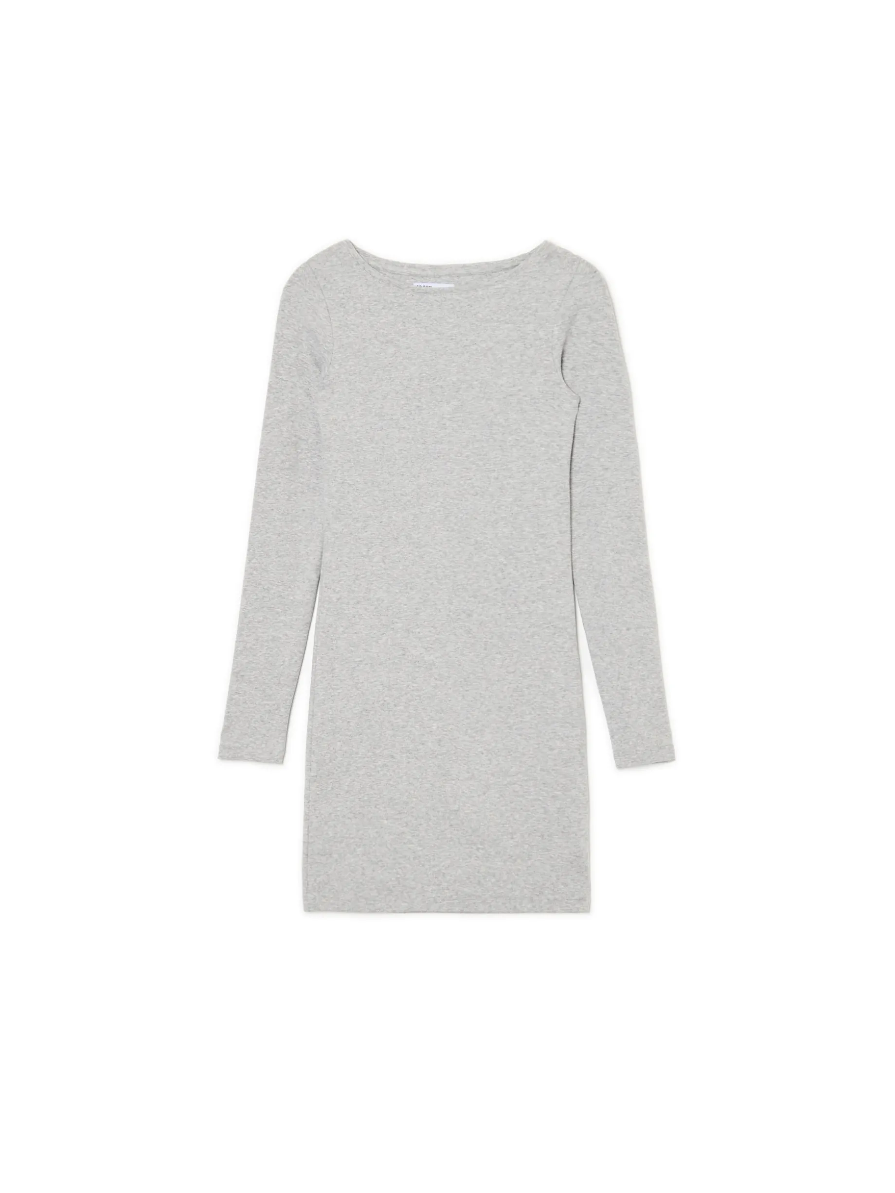 Damska sukienka o długości mini, uszyta z mieszanki dzianin z bawełną. Taki klasyk warto mieć awaryjnie w swojej szafie! bawełna z dodatkiem elastycznych włókien długość midi długie, dopasowane rękawy dekolt w łódkę Wzrost modelki: 172 cm