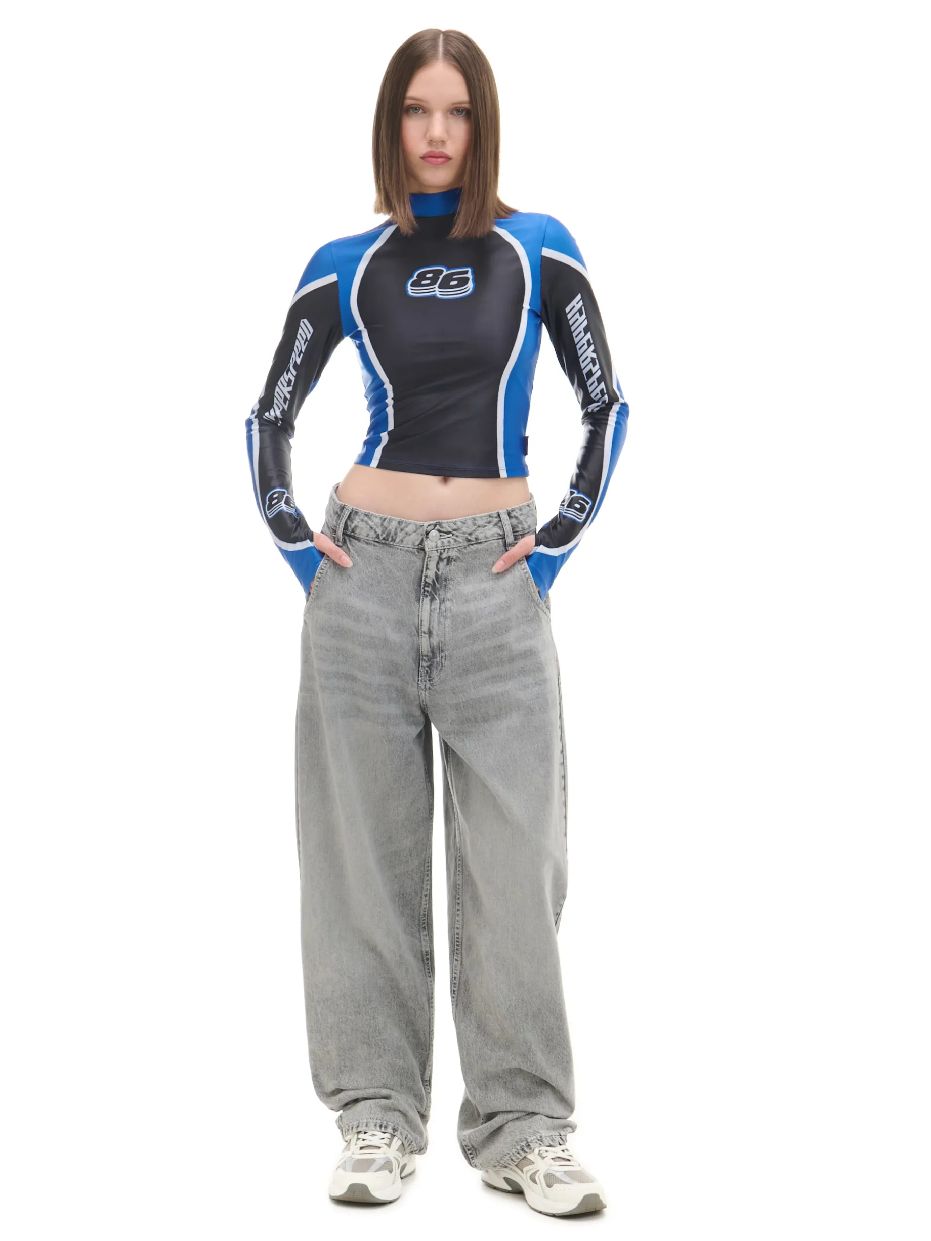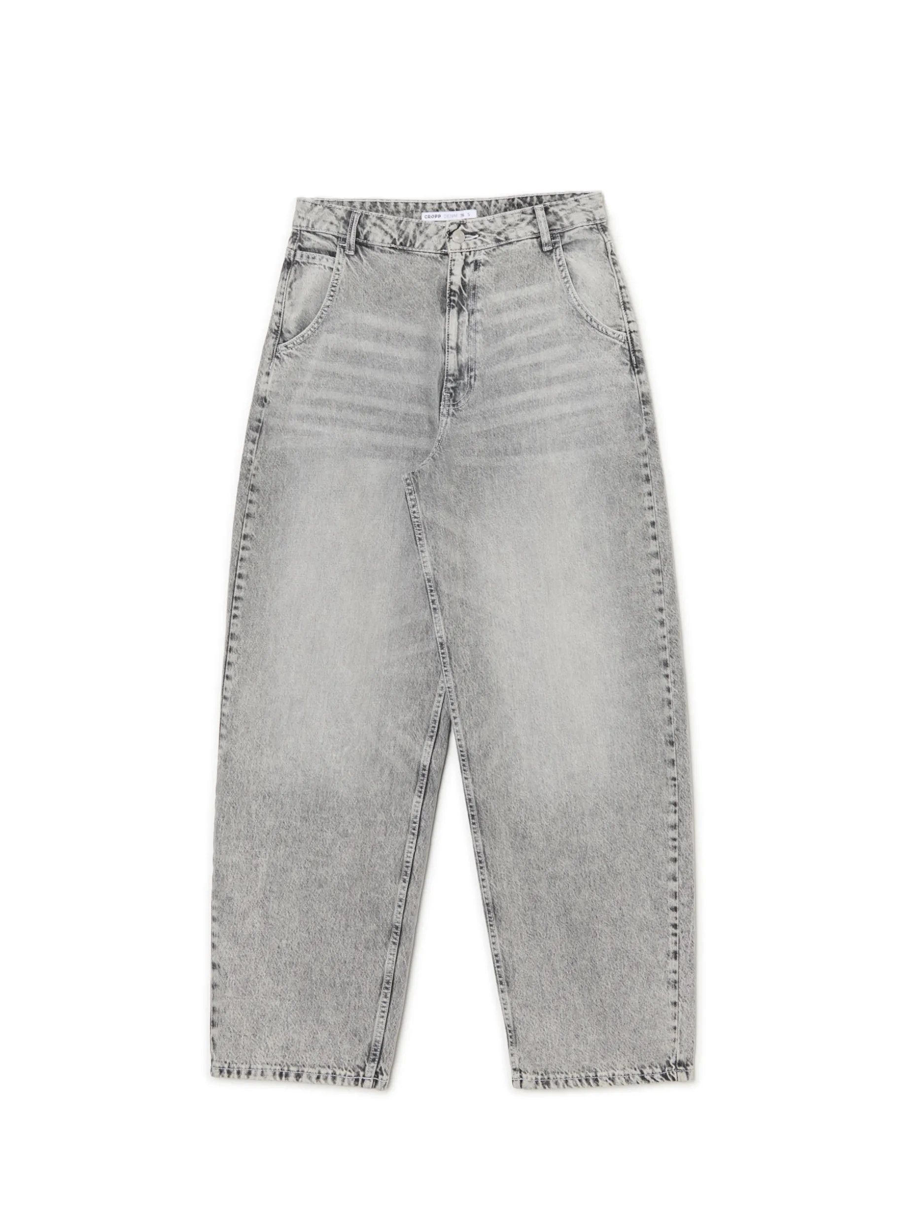 Damskie spodnie jeansowe typu skater, uszyte z bawełny. Luźne nogawki i dopasowana talia zapewnią komfort podczas aktywnego spędzania czasu. Dostępne inne wersje kolorystyczne. 100% bawełny krój skater zapięcie na suwak i guzik szlufki na pasek długie, szerokie nogawki dwie kieszenie z przodu, dwie z tyłu mała kieszeń na monety delikatny efekt sprania Wzrost modelki: 172 cm