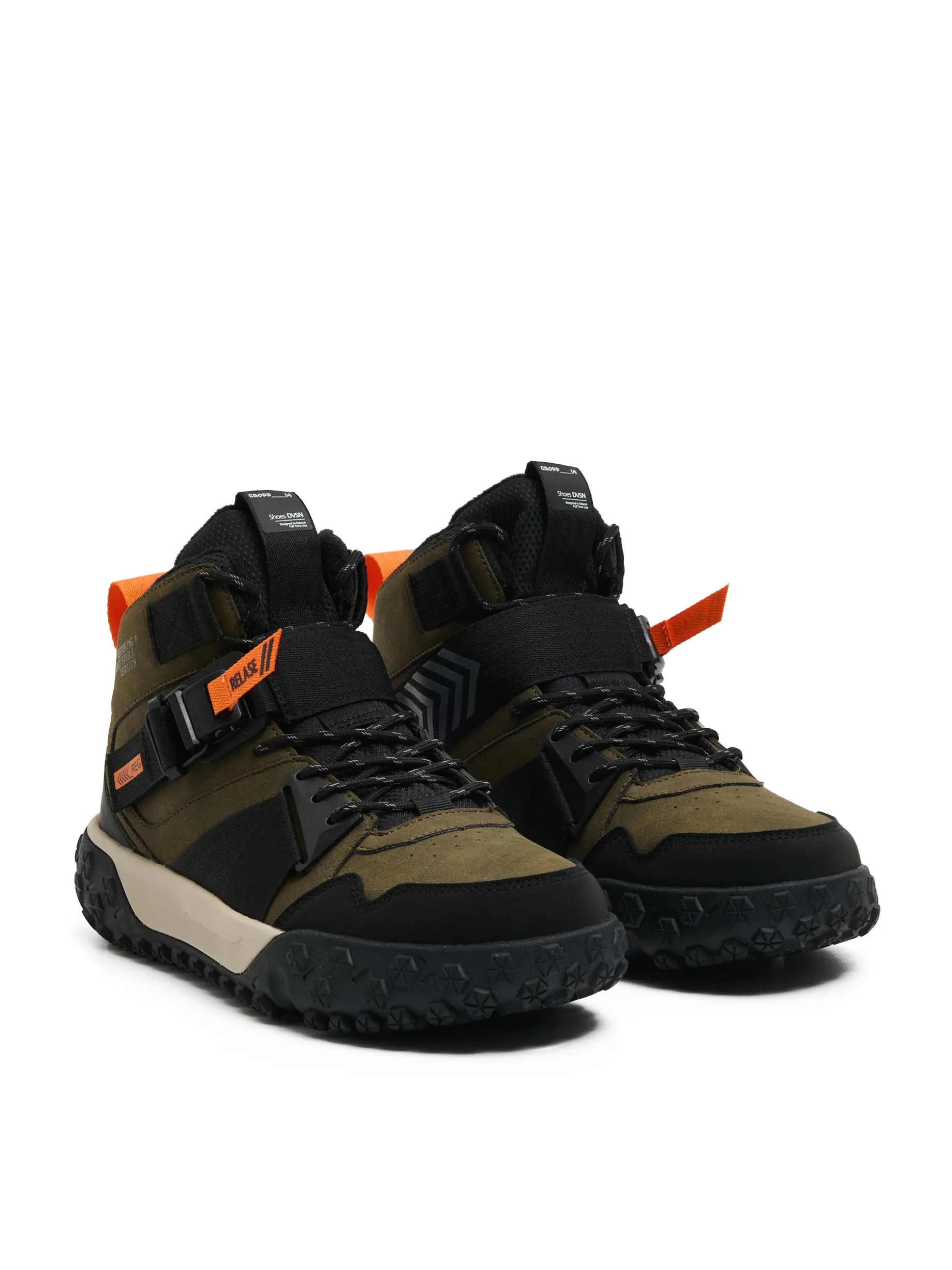 Wejdź w zimę z naszymi butamI! Męskie wysokie sneakersy wykonane z imitacji skóry. Wstawki z siateczki mesh usprawniają przepływ powietrza. A elastyczne elementy usztywniają stopę. Wiązane na sznurówki i zapinane na dodatkowy zatrzask z wygodną regulacją. sznurowane sneakersy z ociepleniem wykonane z łączonych materiałów cholewka ze wstawkami ze sztucznej skóry lekkie gąbkowanie wokół kostki wiązane na elastyczne, prążkowane sznurówki zapięcie na zatrzask solidna czarna podeszwa w subtelny wzór, wykonana z phylonu z gumowymi elementami dla lepszej przyczepności wygodny uchwyt do wkładania i zdejmowania butów naszywka Cropp